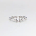 14k Gold Engagement Ring Semi-mount with an oval shape setting, framed by two diamond triads. A beautiful piece with simple and breathtaking details, ready for any center stone.