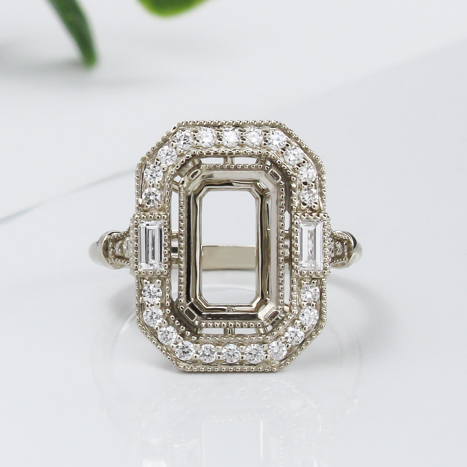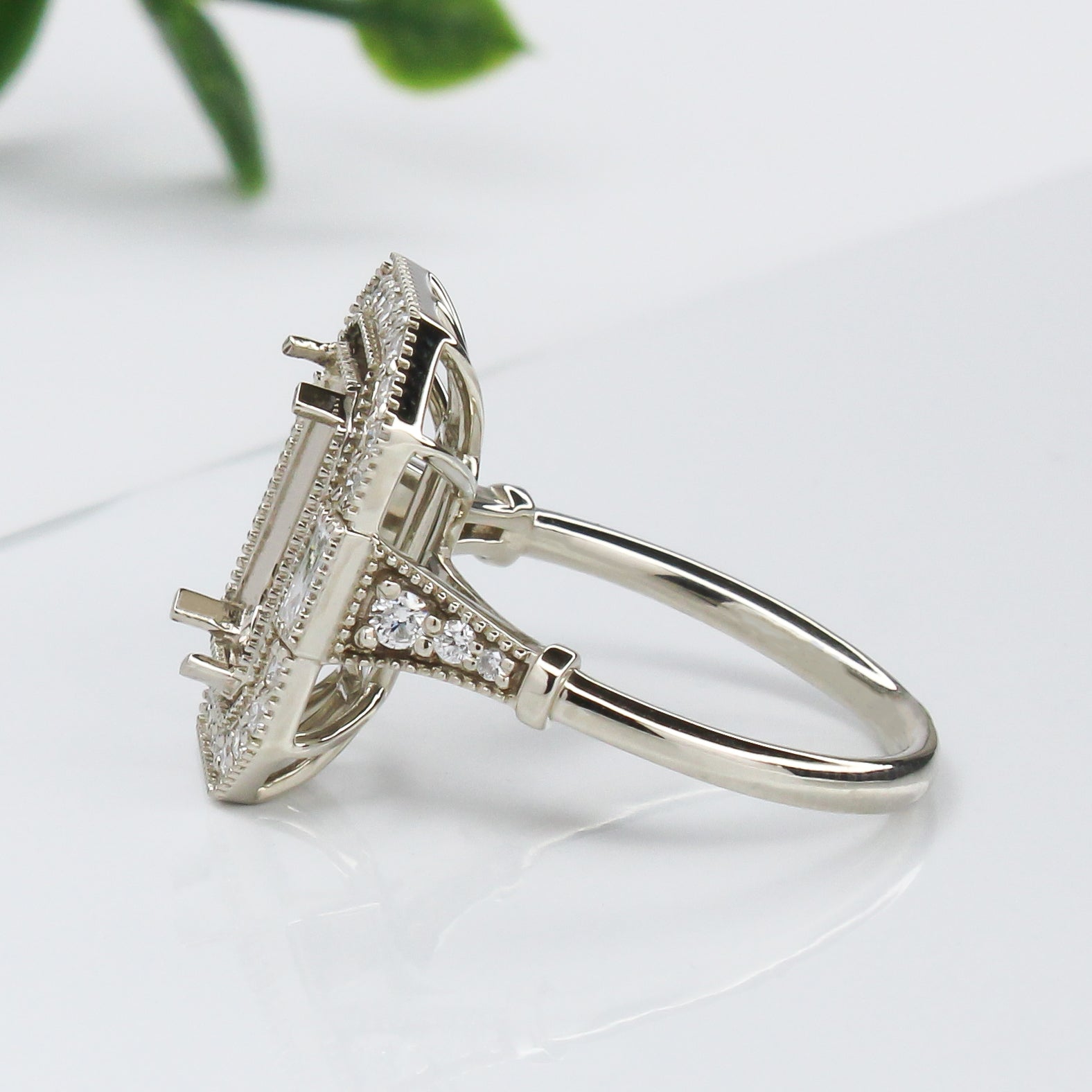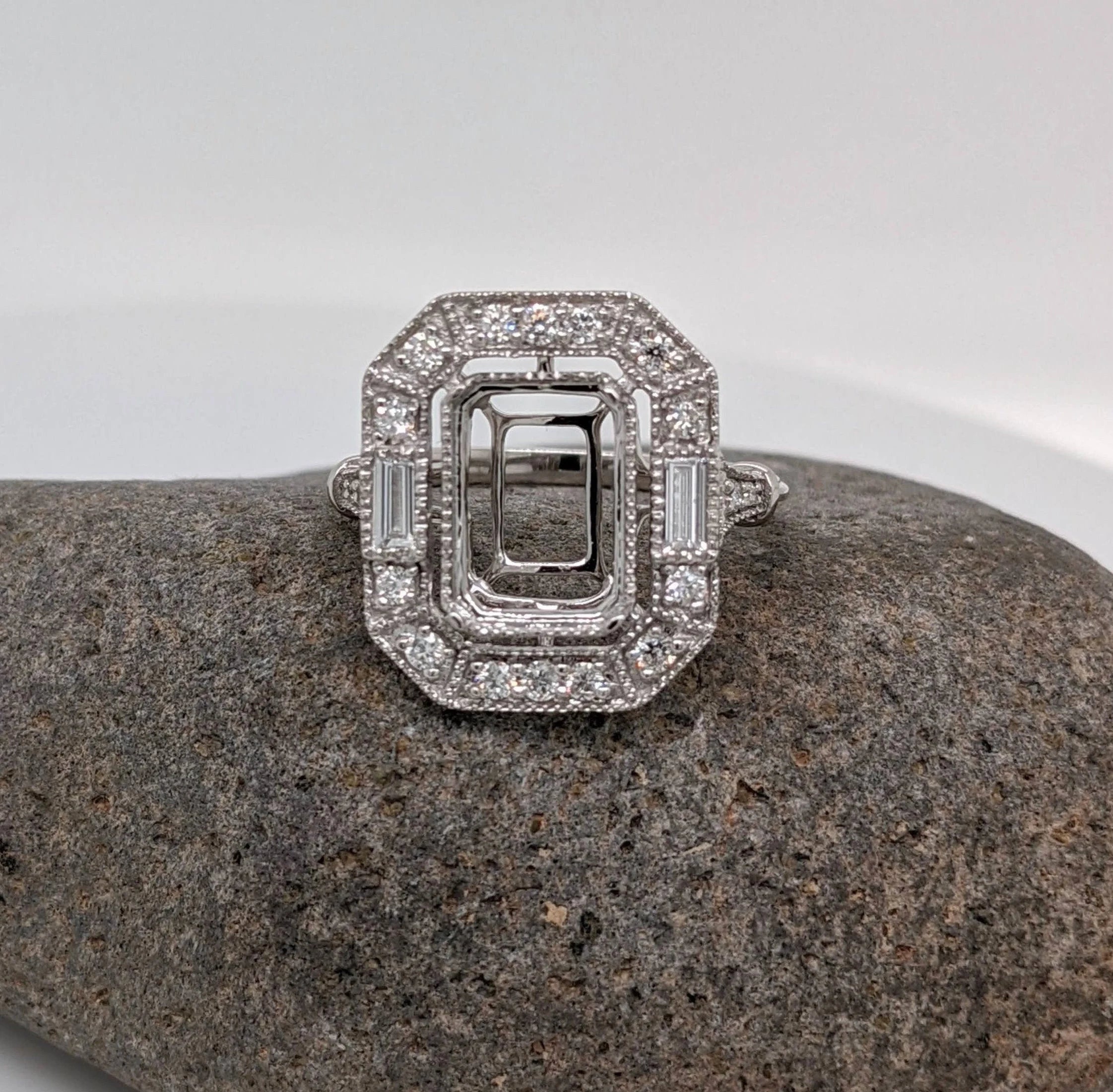 Stunning and timeless piece that effortlessly combines elegance with personal customization. Designed with a luxurious 14K gold band, this ring features an intricate semi-mount setting that allows you to choose the center stone of your dreams, creating a one-of-a-kind engagement ring.