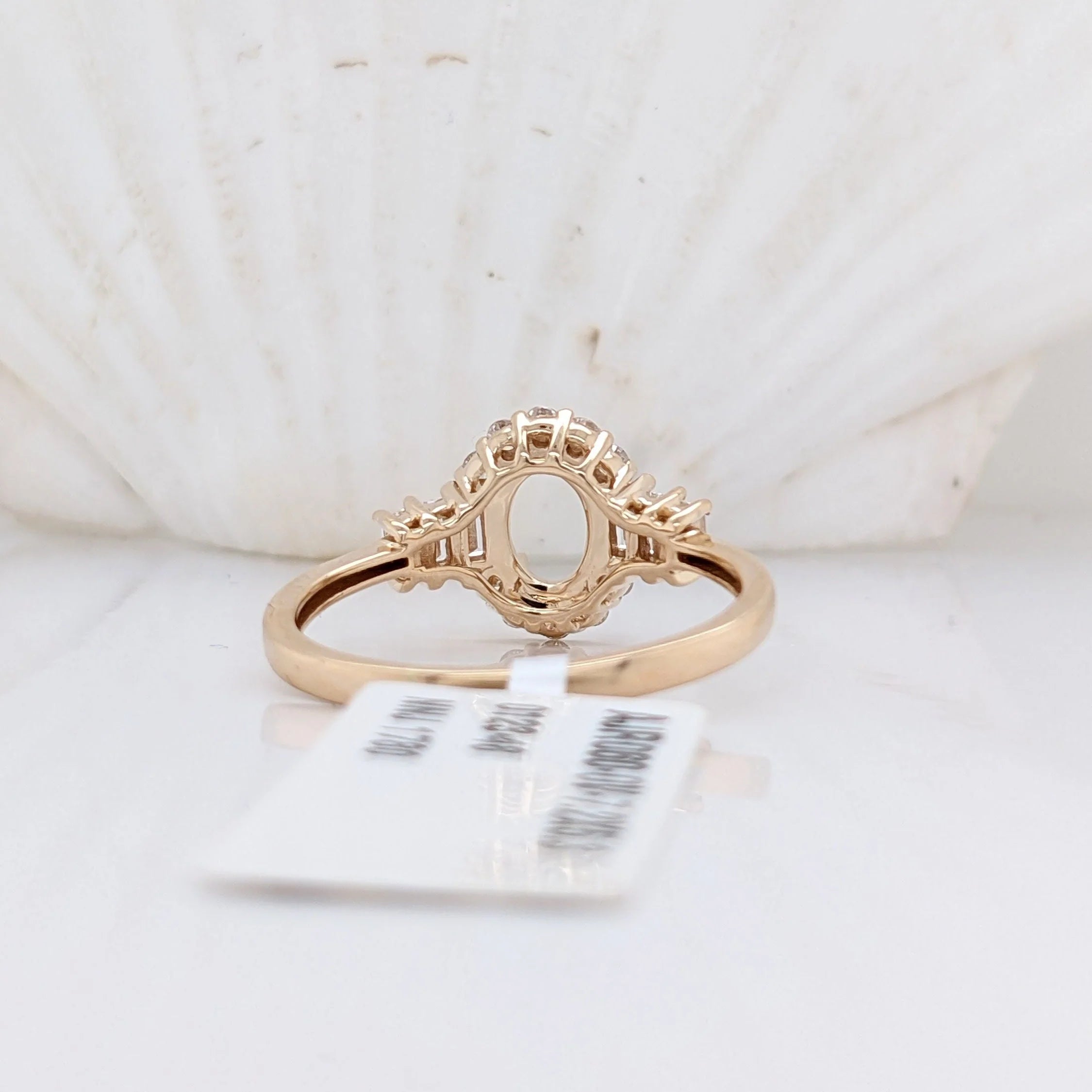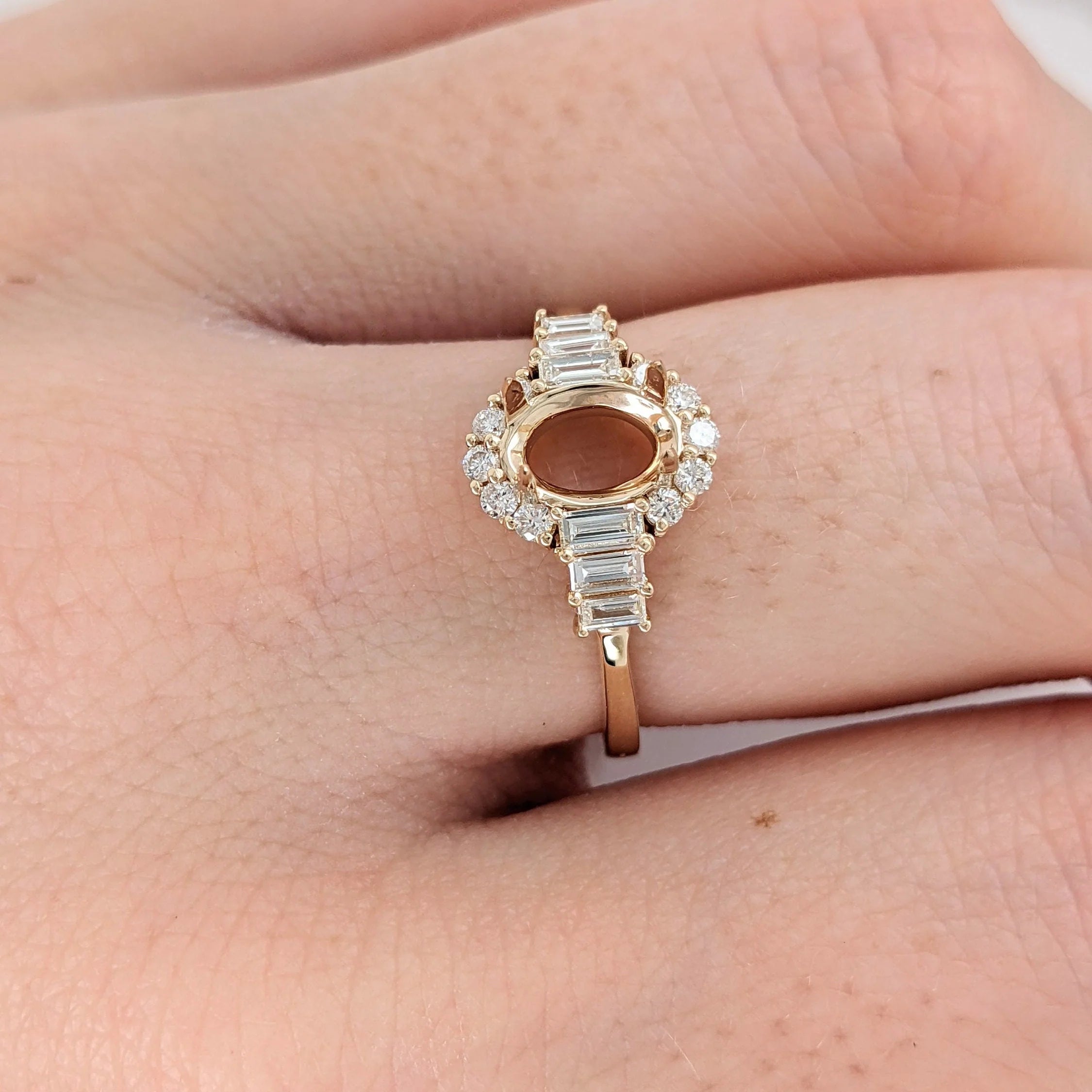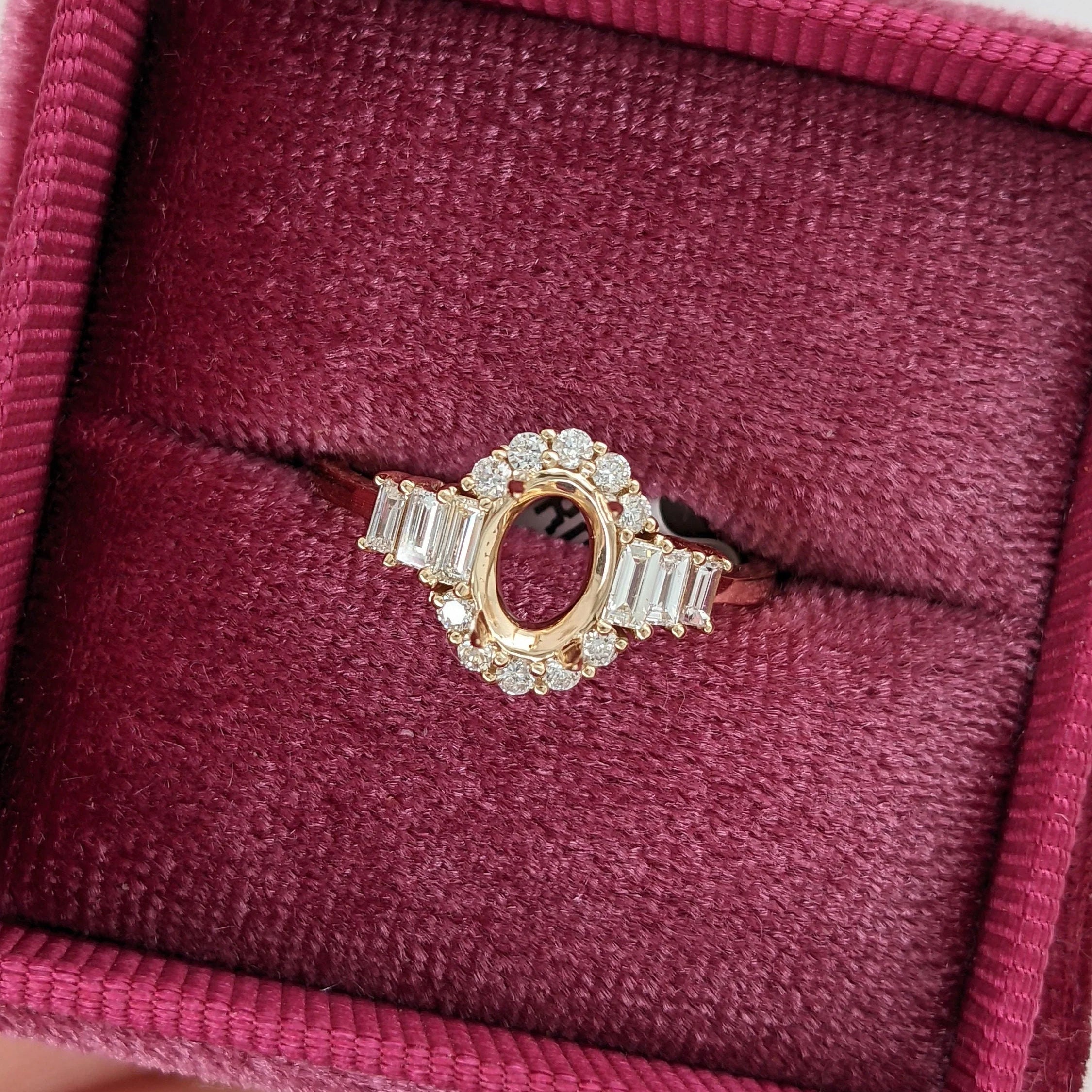 Fabulous Ring Setting W Natural Baguette and Round Diamond Accents in 14K Solid Gold | Oval Shape | Customizable