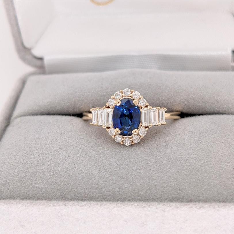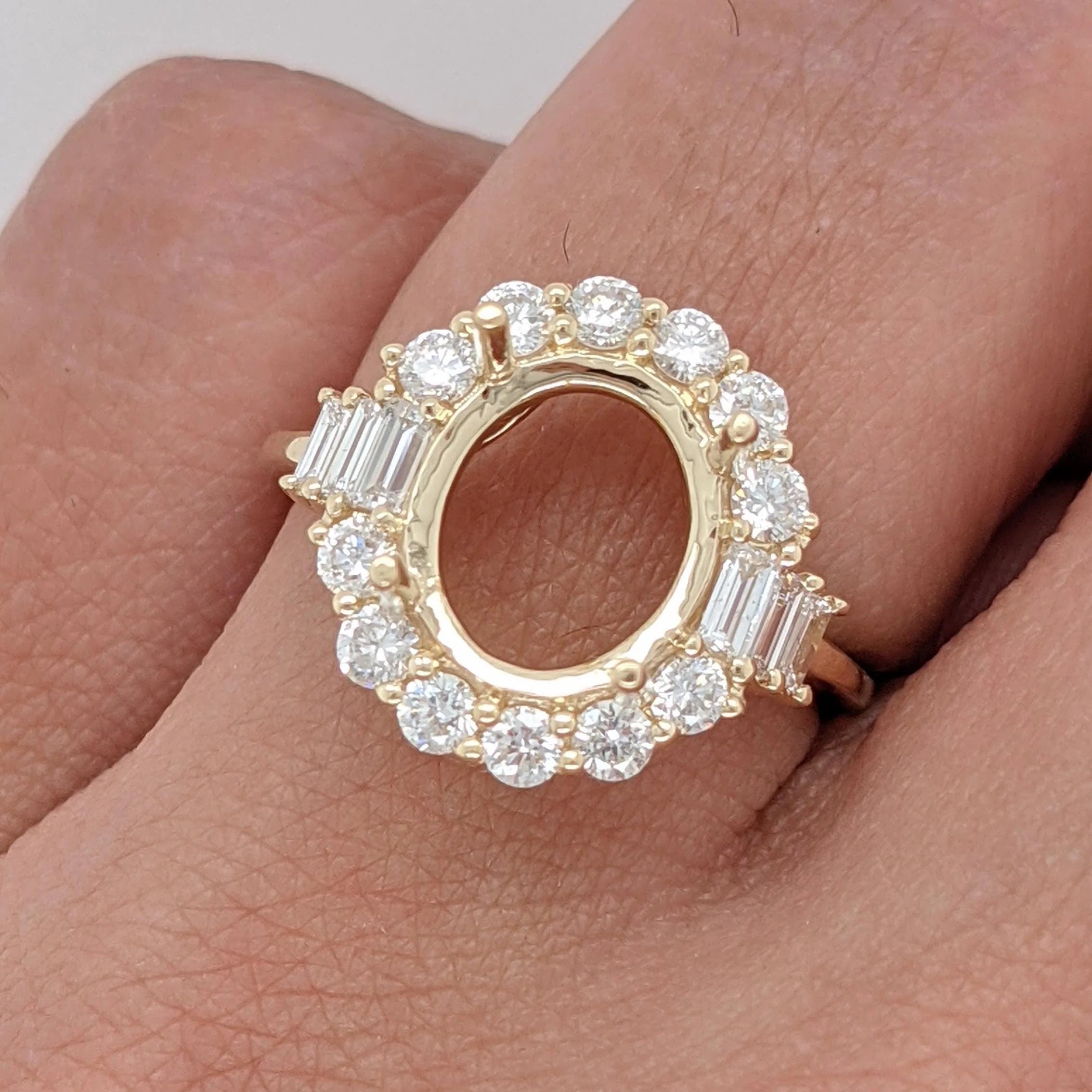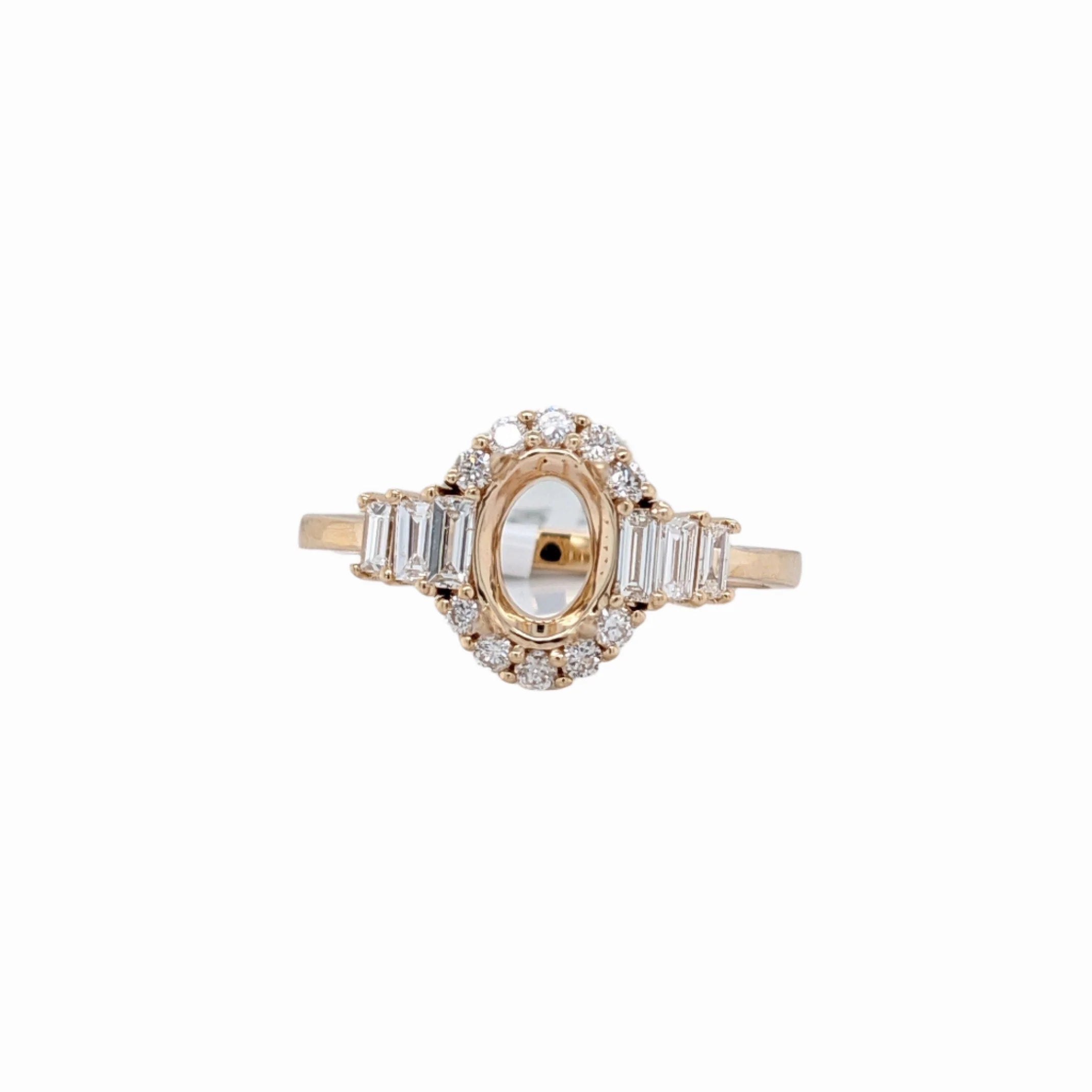 Fabulous Ring Setting W Natural Baguette and Round Diamond Accents in 14K Solid Gold | Oval Shape | Customizable