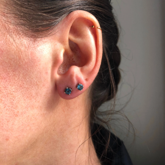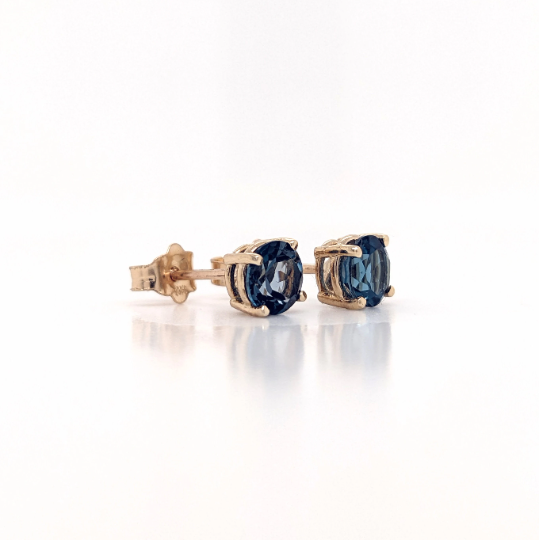 Four Prong Round London Topaz Solitaire Stud Earrings | 3mm 4mm 5mm 6mm 7mm 8mm