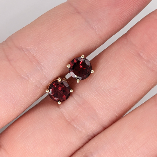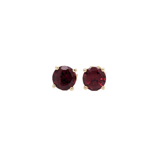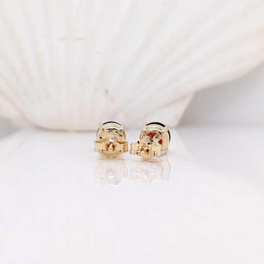 Four Prong Round Red Garnet Solitaire Stud Earrings in 14K Gold | 3mm 4mm 5mm 6mm 7mm 8mm