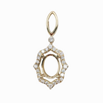 Simple & sweet 14k Gold Pendant Semi-mount. This oval shape setting would beautifully compliment any center stone. A connector diamond and a large bail make for easy chain threading.