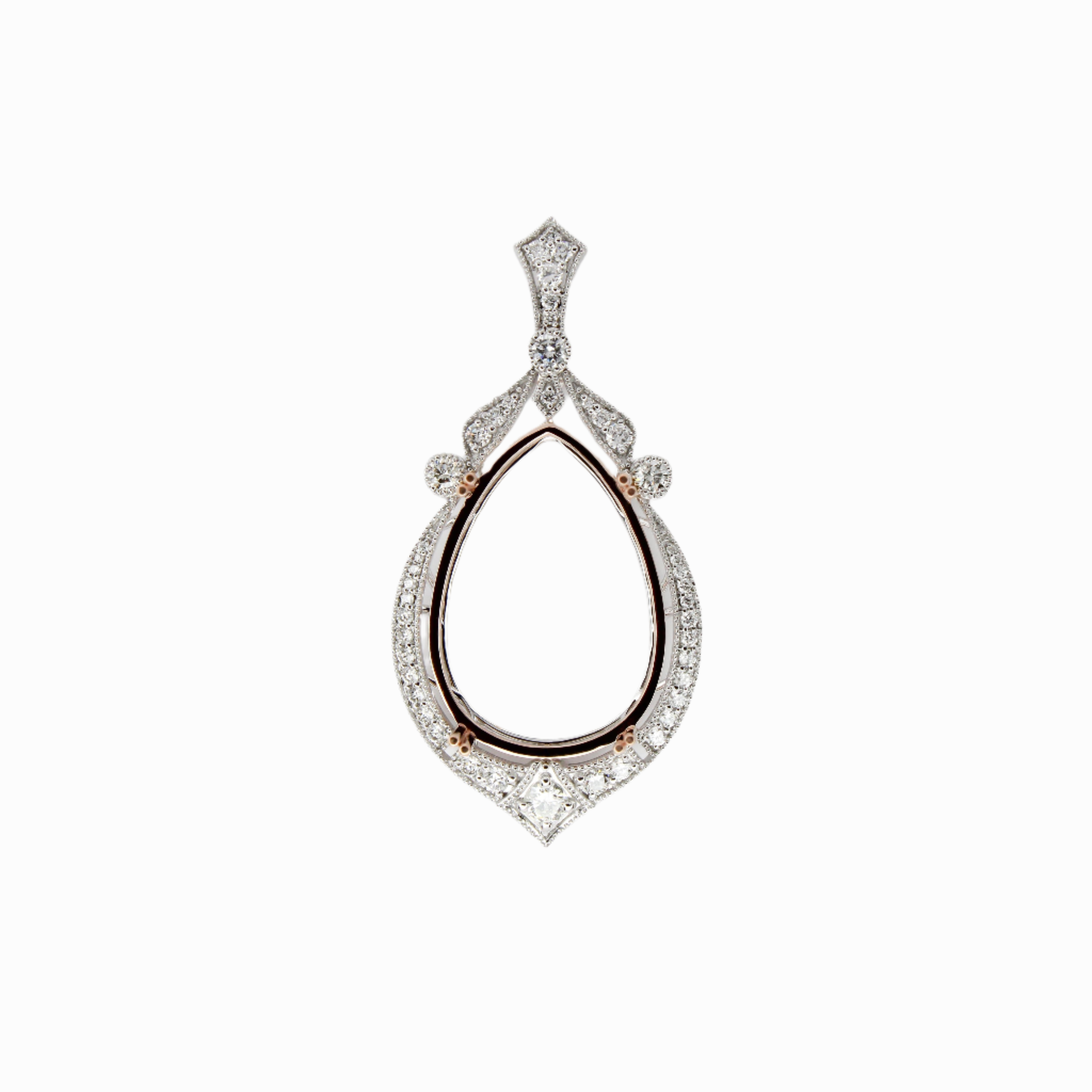 Large Statement Pendant Setting w Earth Mined Diamonds in 14K Gold | Pear Shape 28x20mm