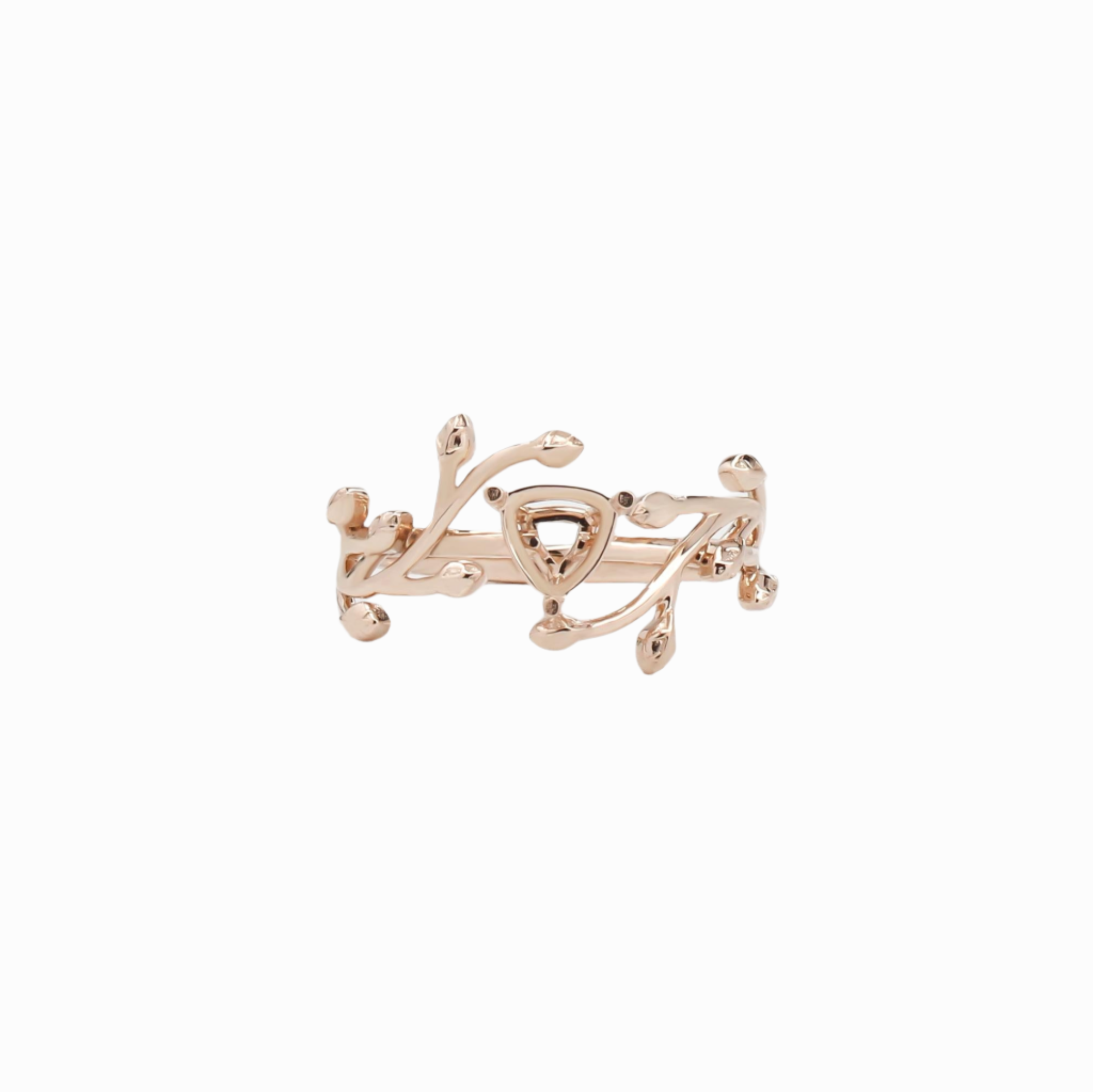 Leafy Vine Solitaire Ring Semi Mount in 14K Solid Gold | Trillion Shape | Custom