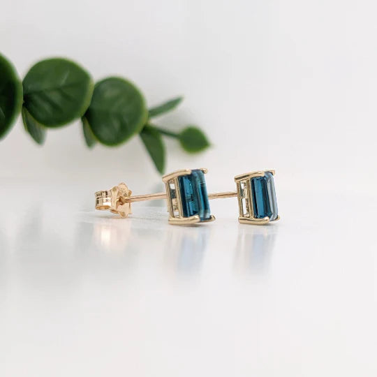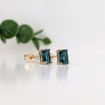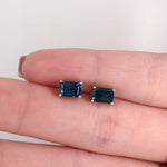 London Topaz Emerald Cut Solitaire Stud Earrings | 6x4mm 7x5mm 8x6mm 9x7mm 10x8mm