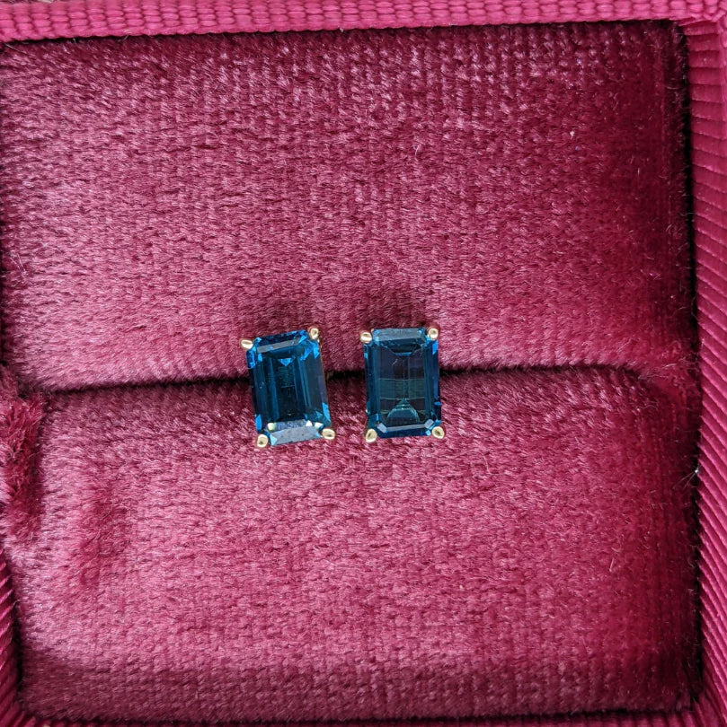 Their deep color and geometric design make these london topaz studs sleek and modern. Add them to your outfit for an upscaled look.