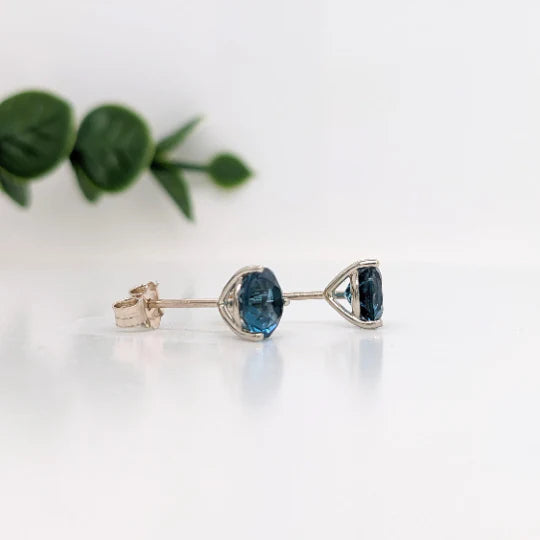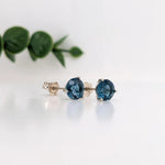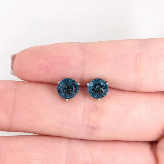 London Topaz Round Martini Solitaire Stud Earrings | 3mm 4mm 5mm 6mm 7mm 8mm