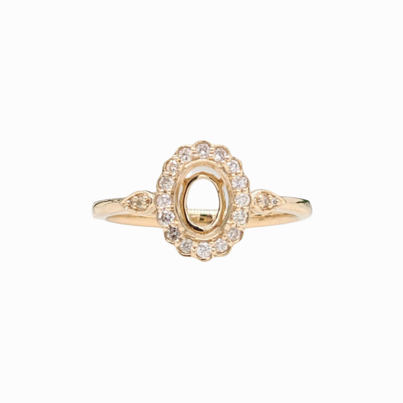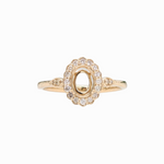 Lovely Scalloped Ring Setting w Natural Diamond Halo in Solid 14k Gold | Oval Shape | Gemstone Setting | Fine Jewelry | Customizable