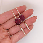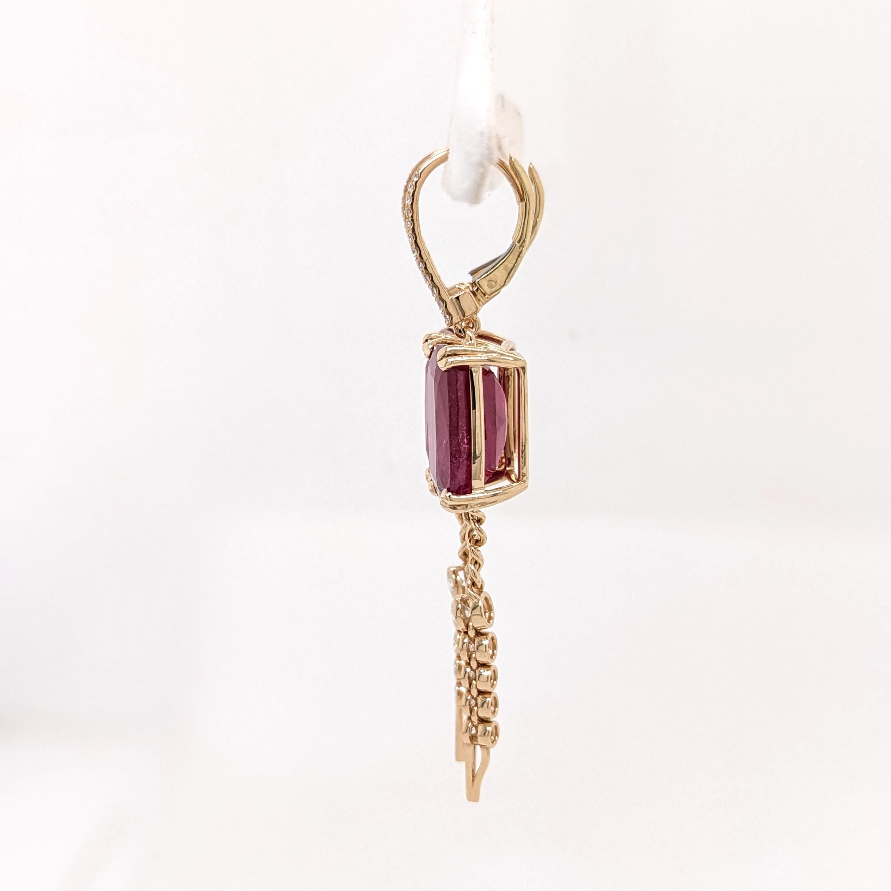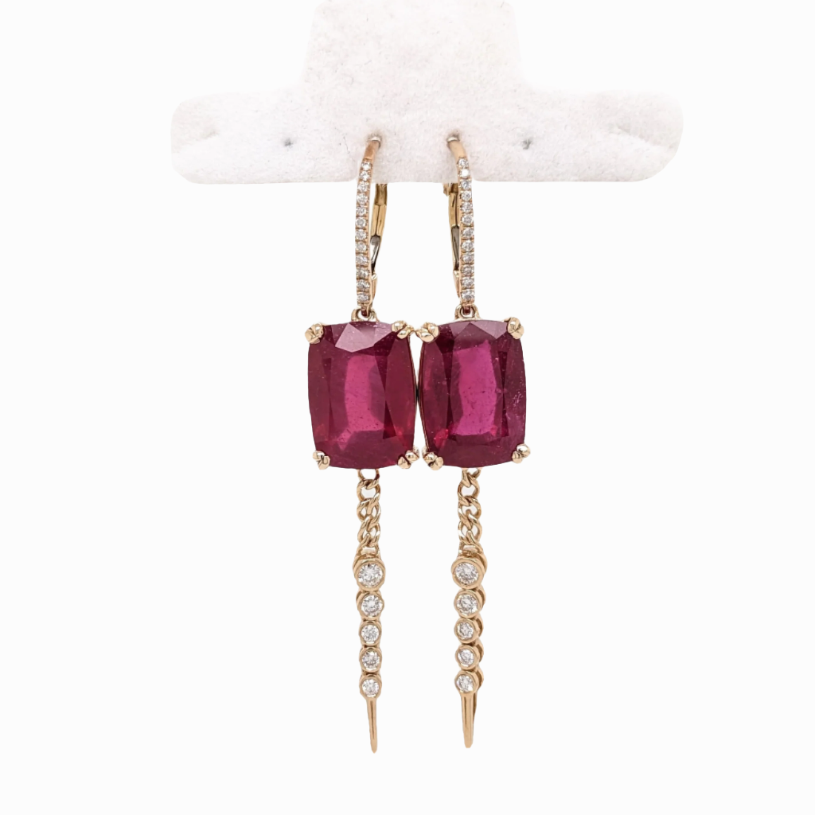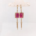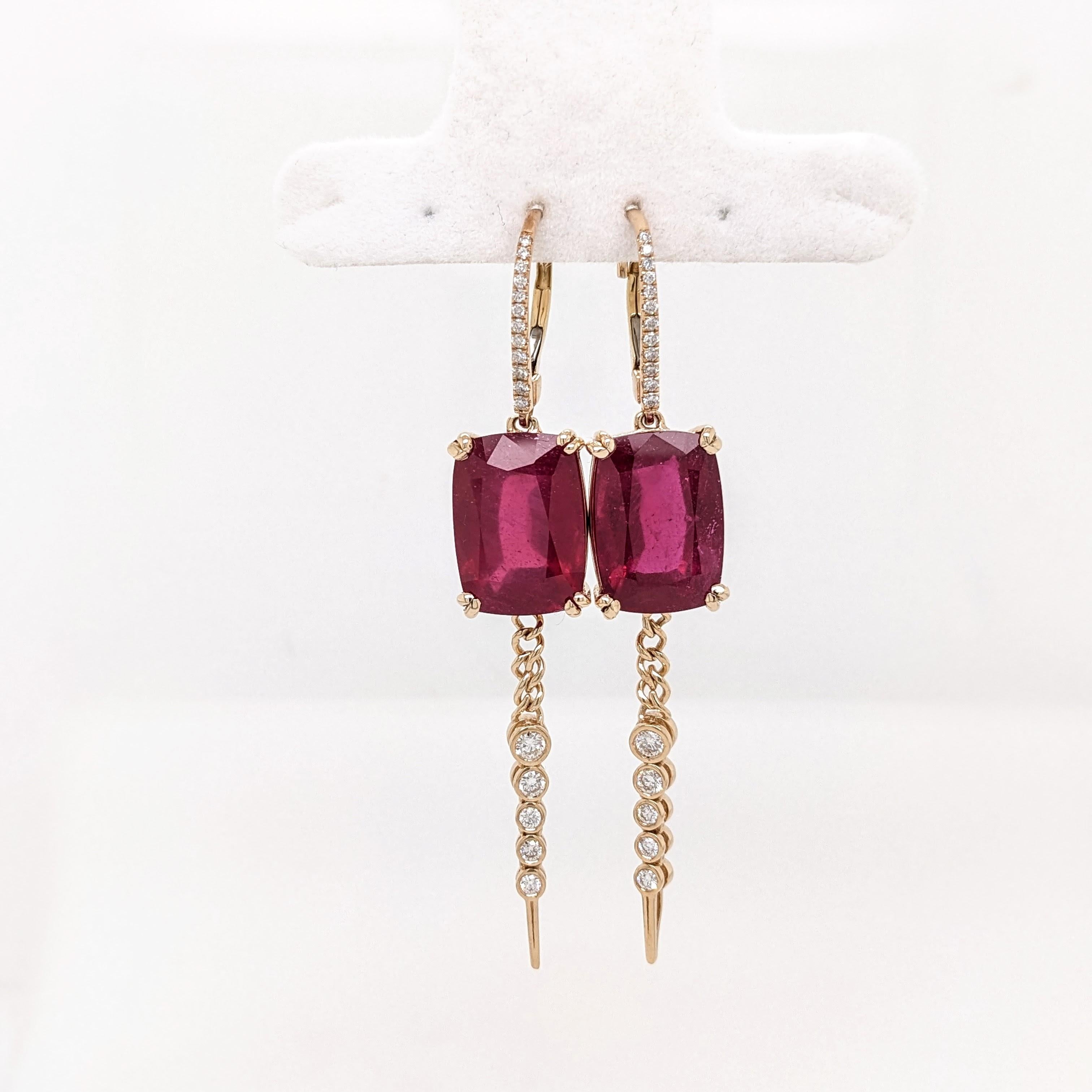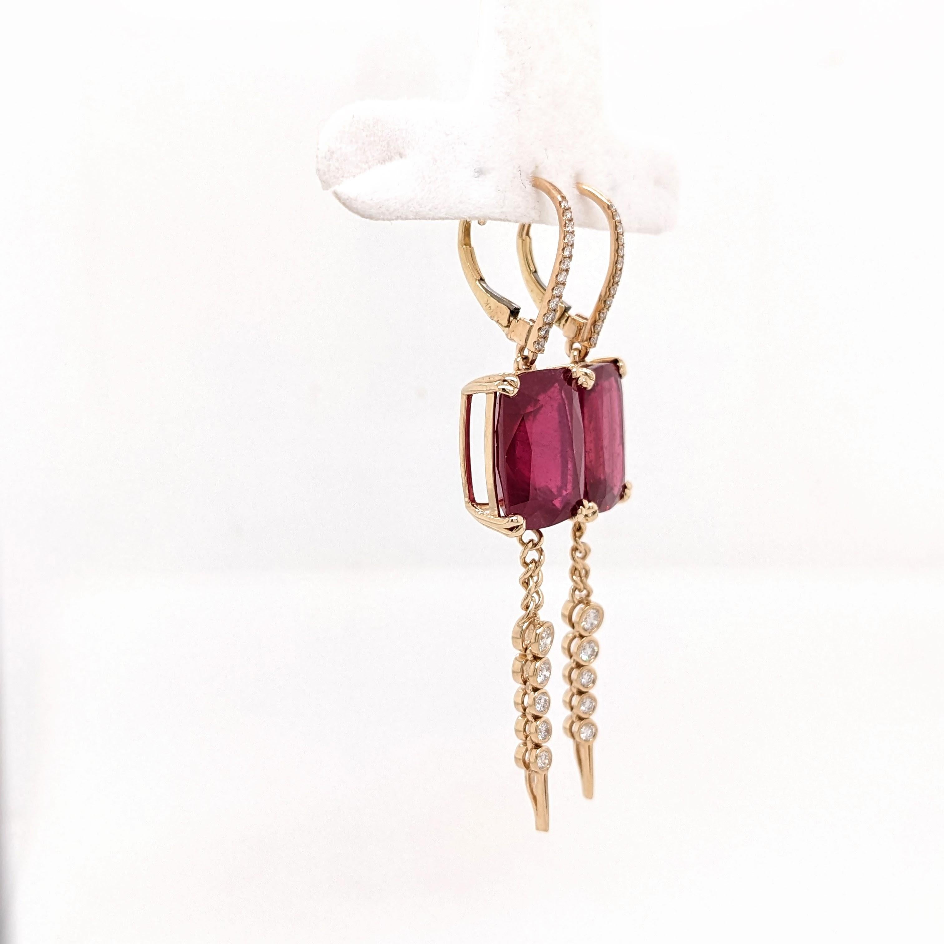 Madagascar Ruby Dangle Earrings w Earth Mined Diamonds in Solid 14K Gold | Cushion 14x10mm