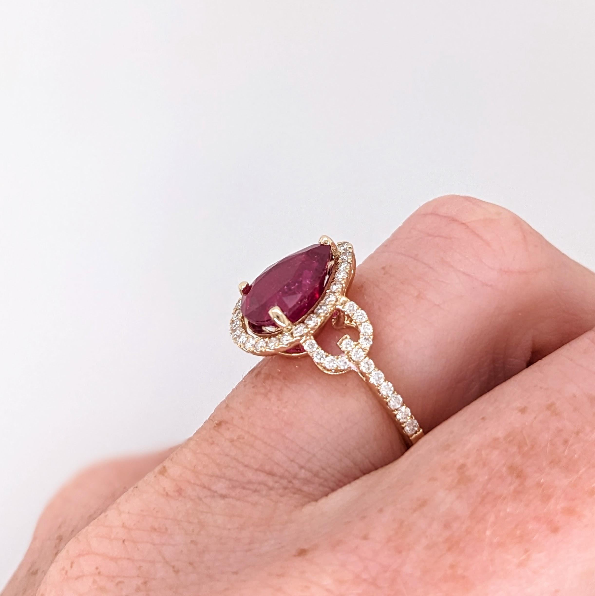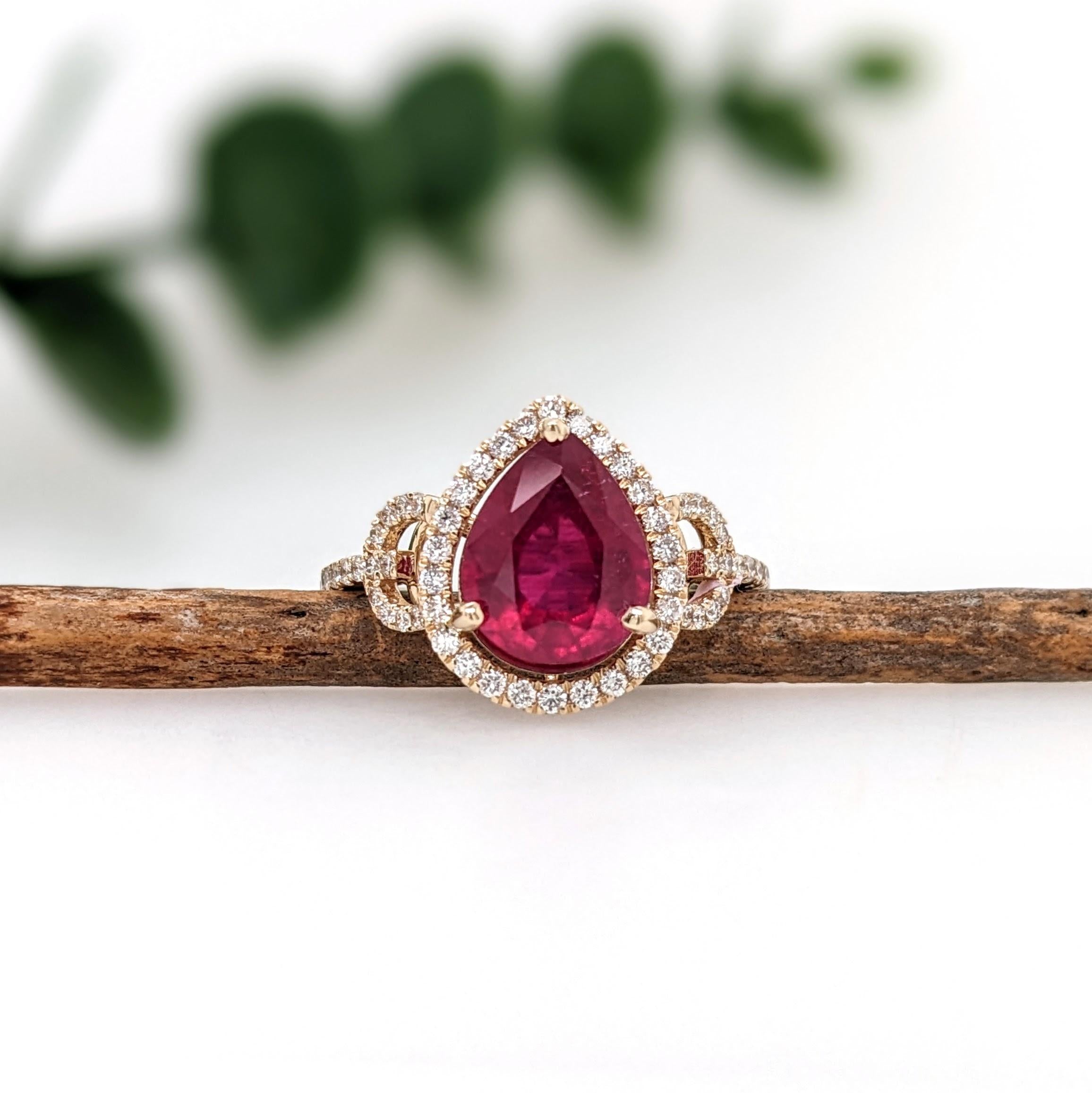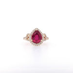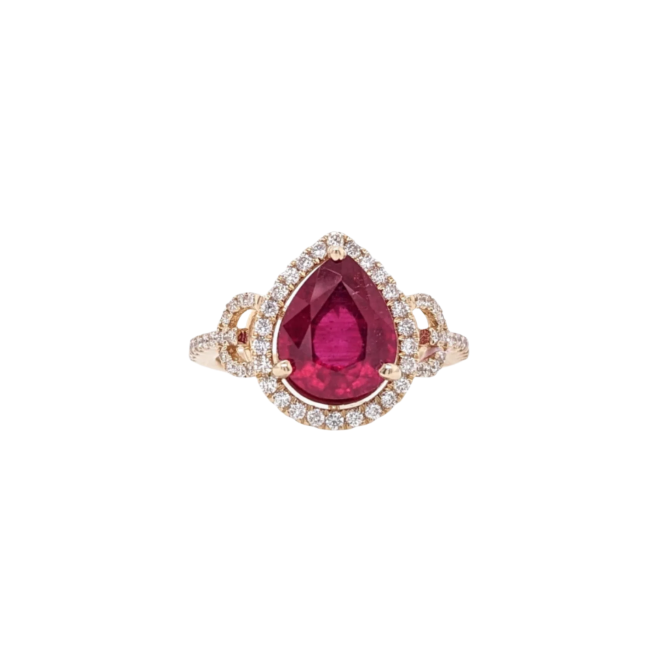 Madagascar Ruby Ring with Earth Mined Diamonds in Solid 14K Gold | Pear Shape 10x8mm