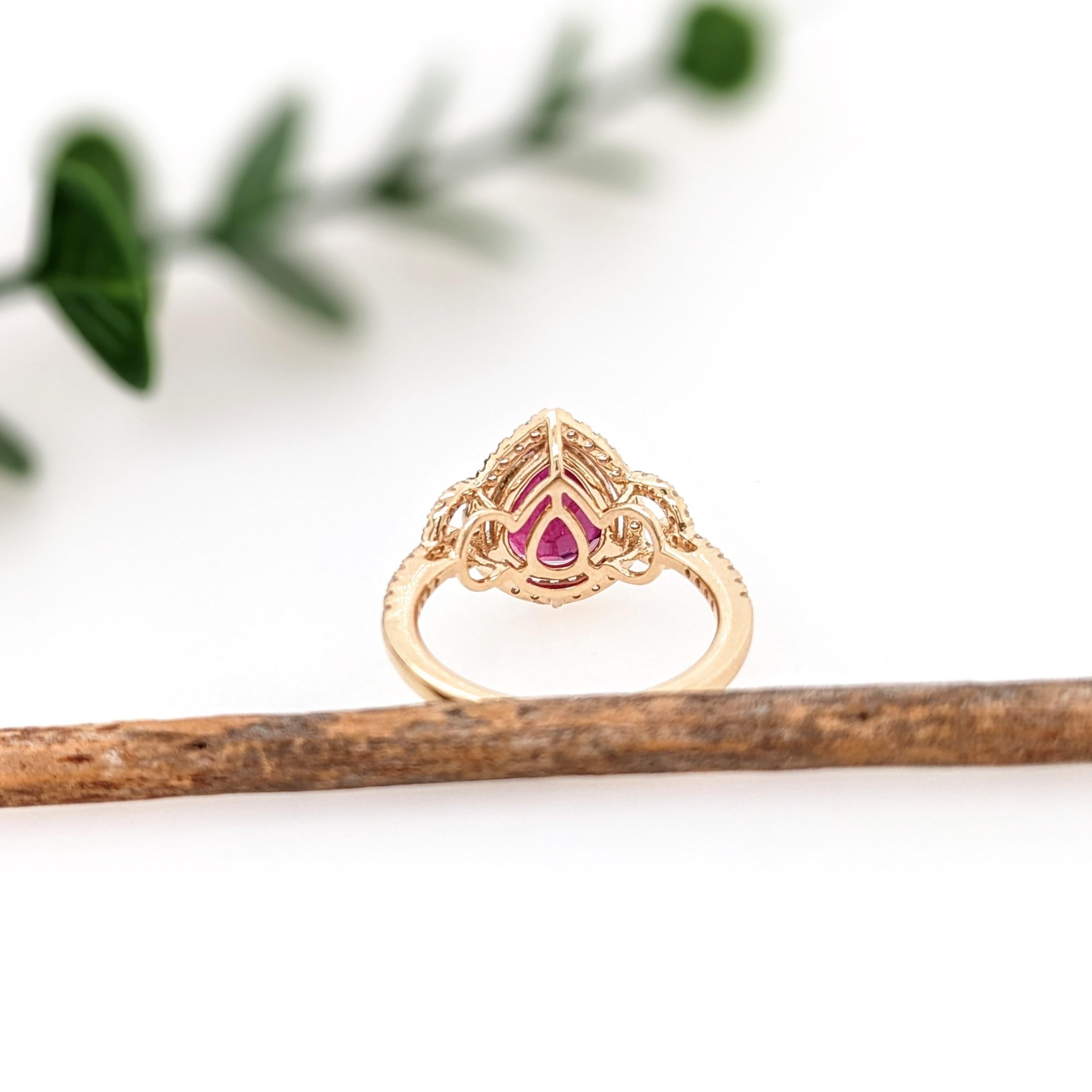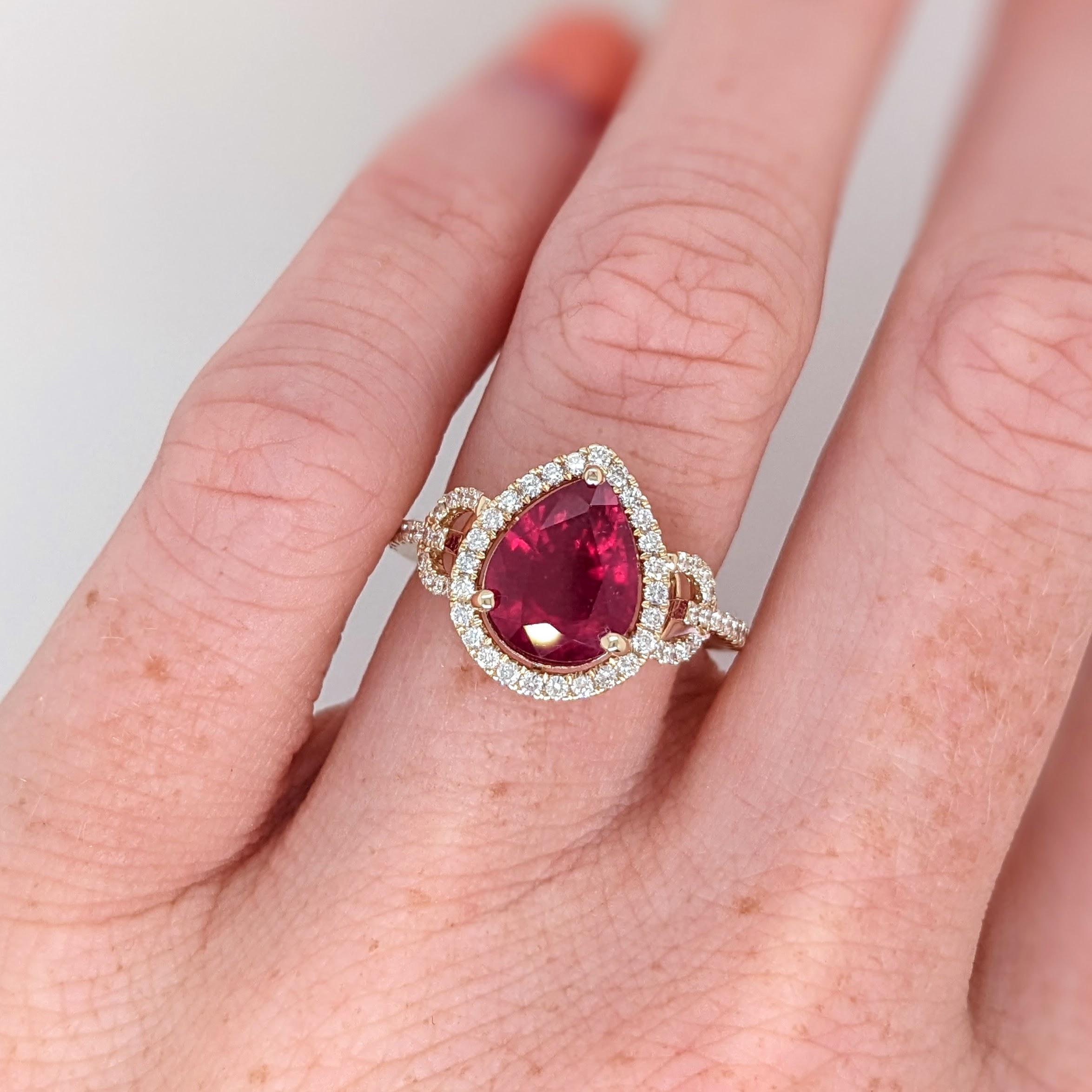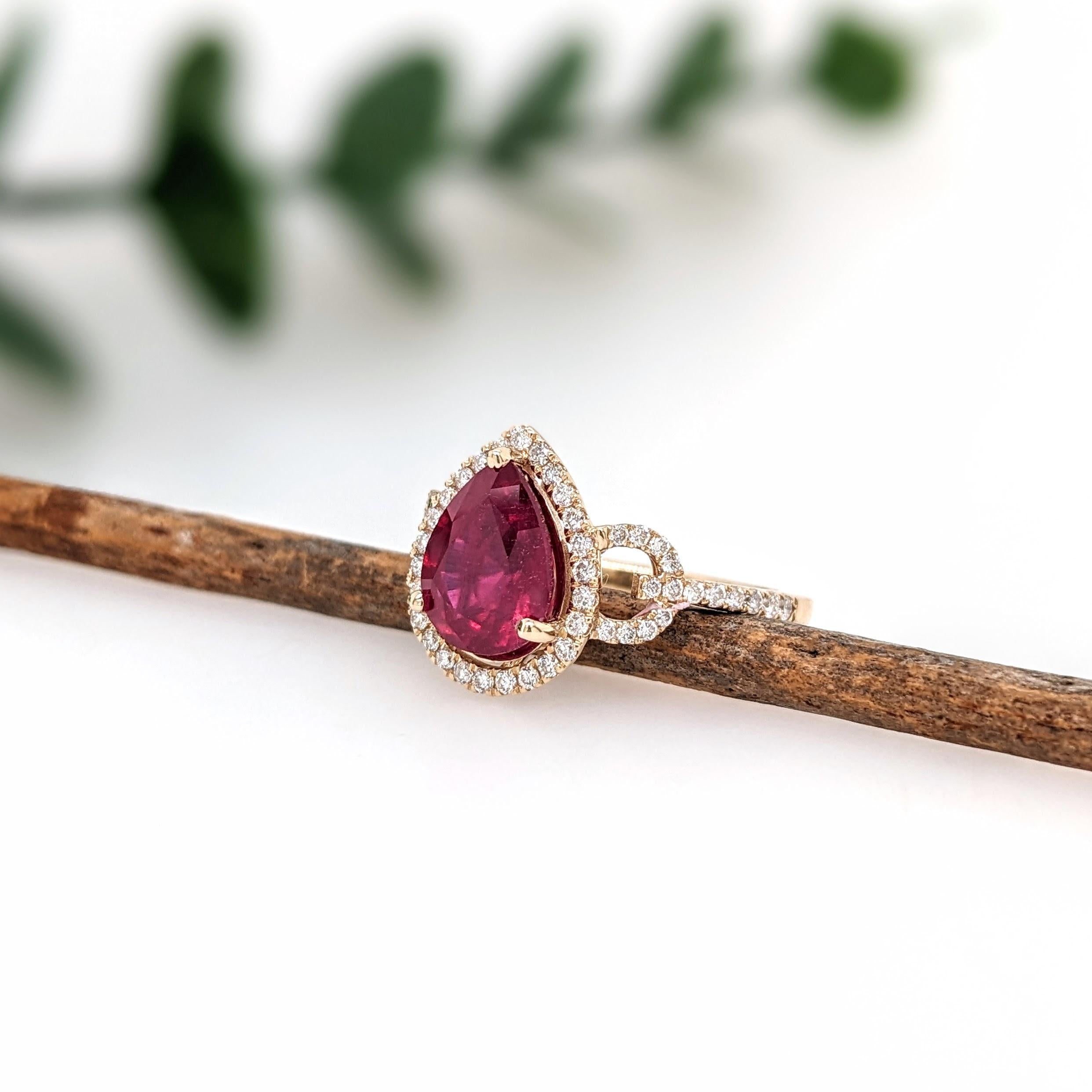 Madagascar Ruby Ring with Earth Mined Diamonds in Solid 14K Gold | Pear Shape 10x8mm