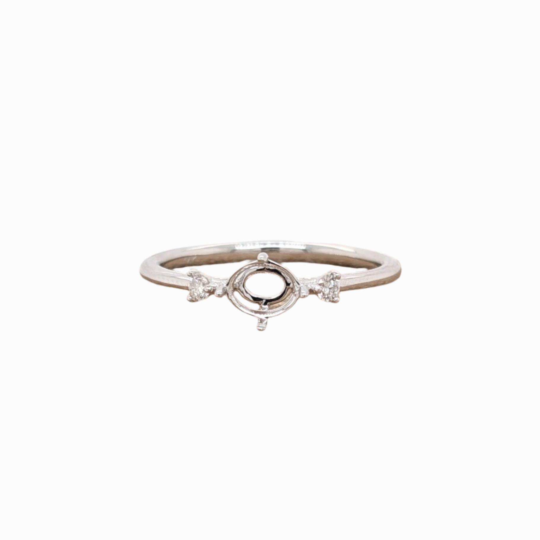 Minimalistic East West Ring Setting W Earth Mined Diamond Accents in 14K Solid Gold | Oval Shape