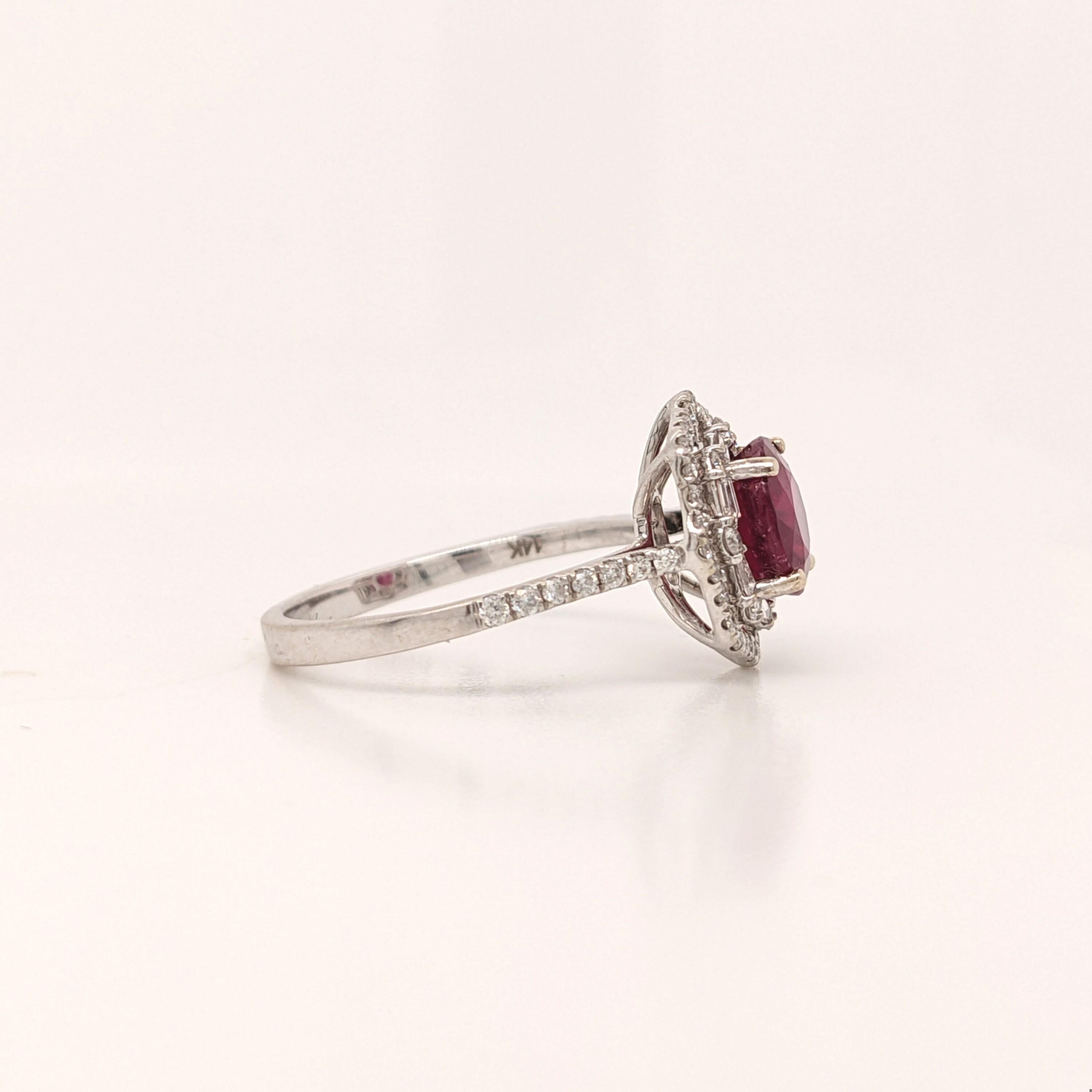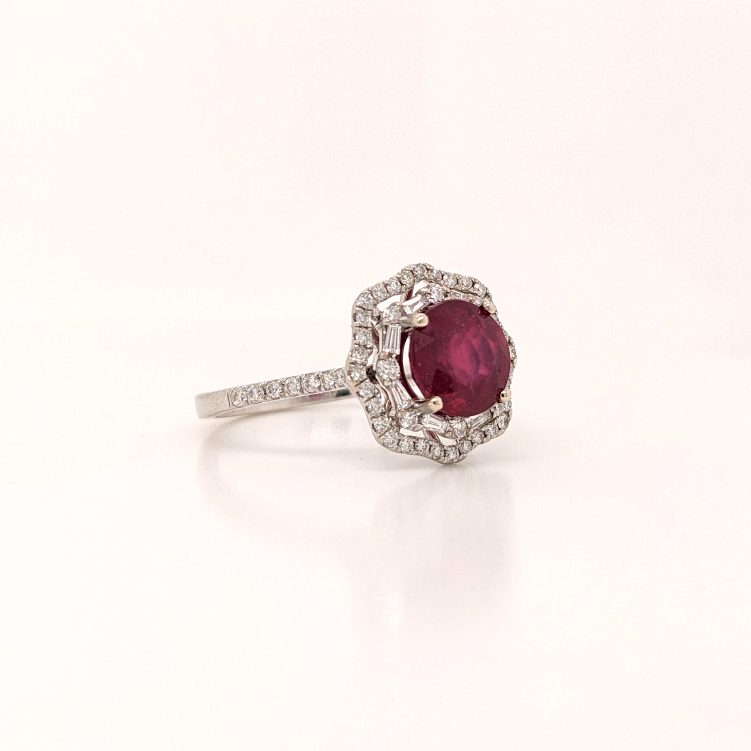 Naina 14K White Gold Madagascar Ruby Diamond Ring | Round 10mm