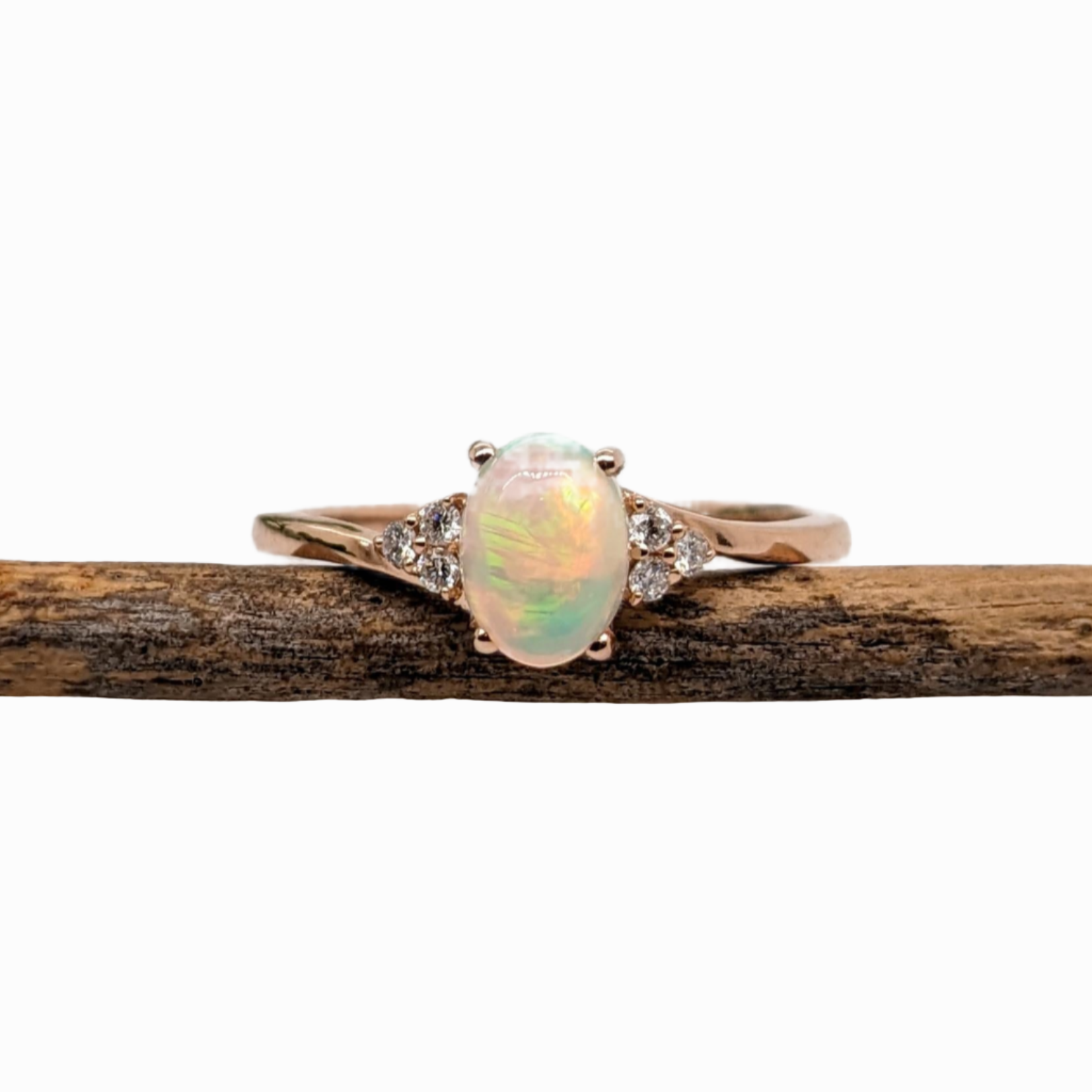 Opal Ring w Earth Mined Diamonds in Solid 14K Gold | Oval 7x5mm | Customizable