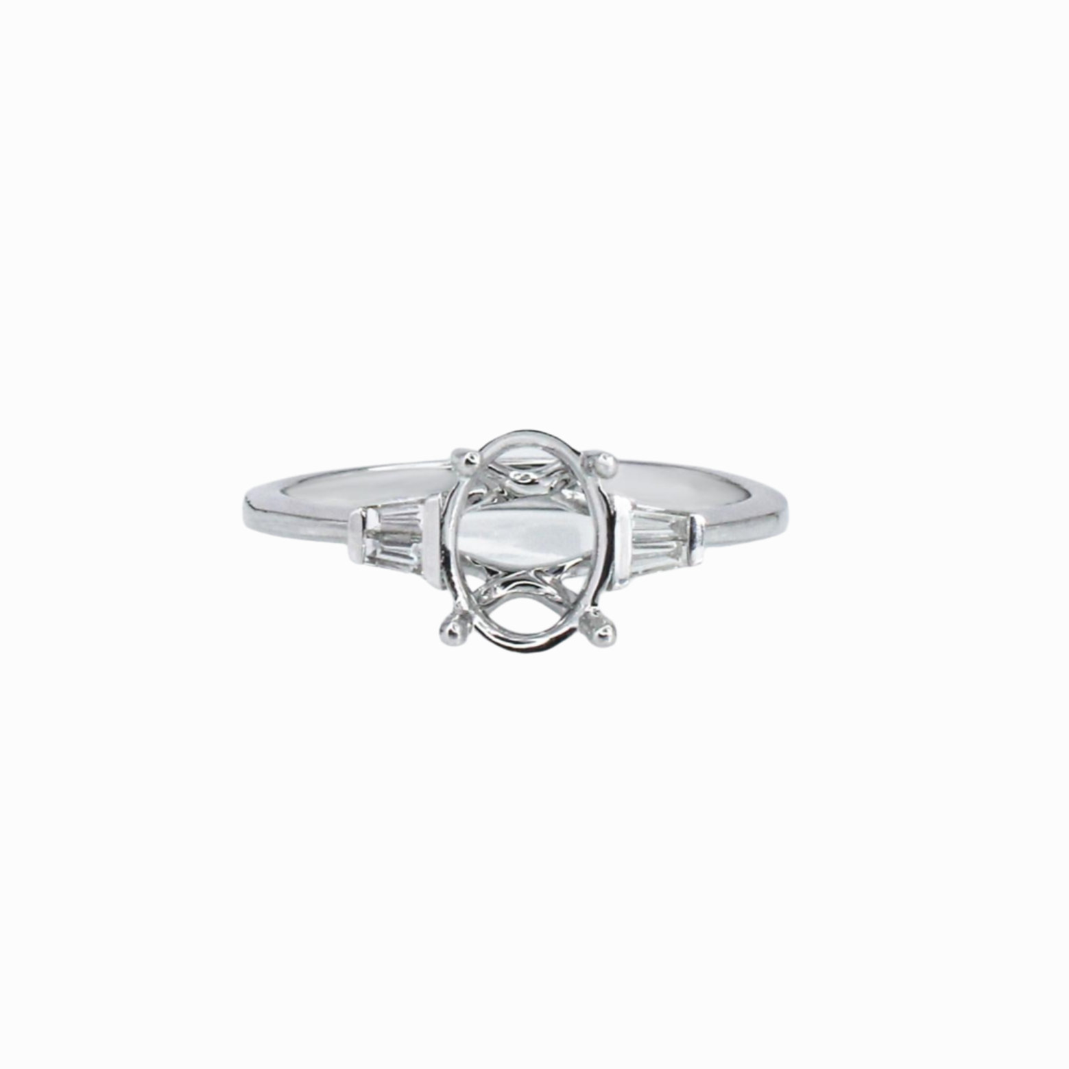 Oval Ring Semi Mount w Baguette Diamond Accents in Solid 14K Gold | Customizable