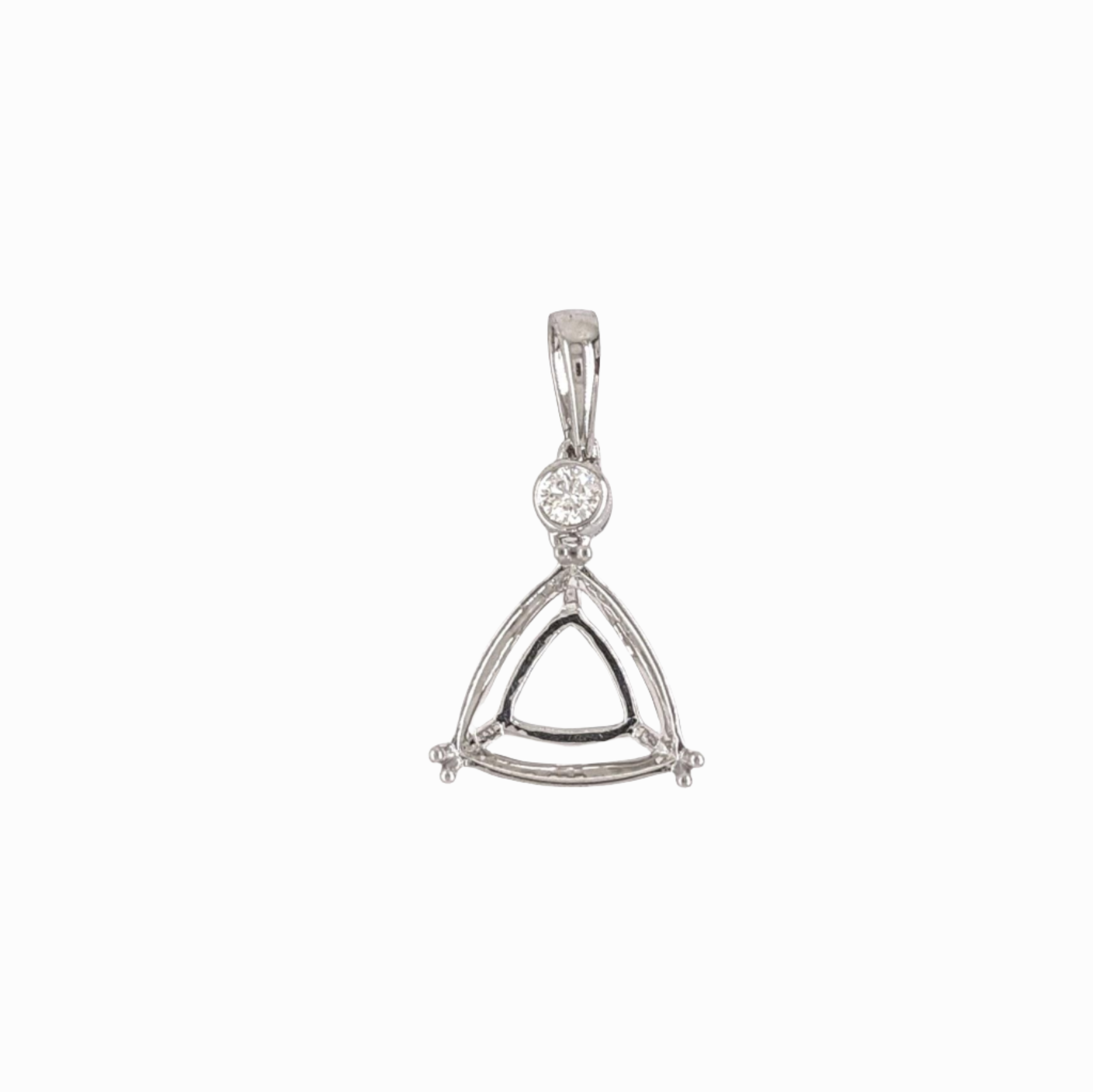 Pendant Semi Mount w Earth Mined Diamond in Solid 14K Gold | Trillion 10mm