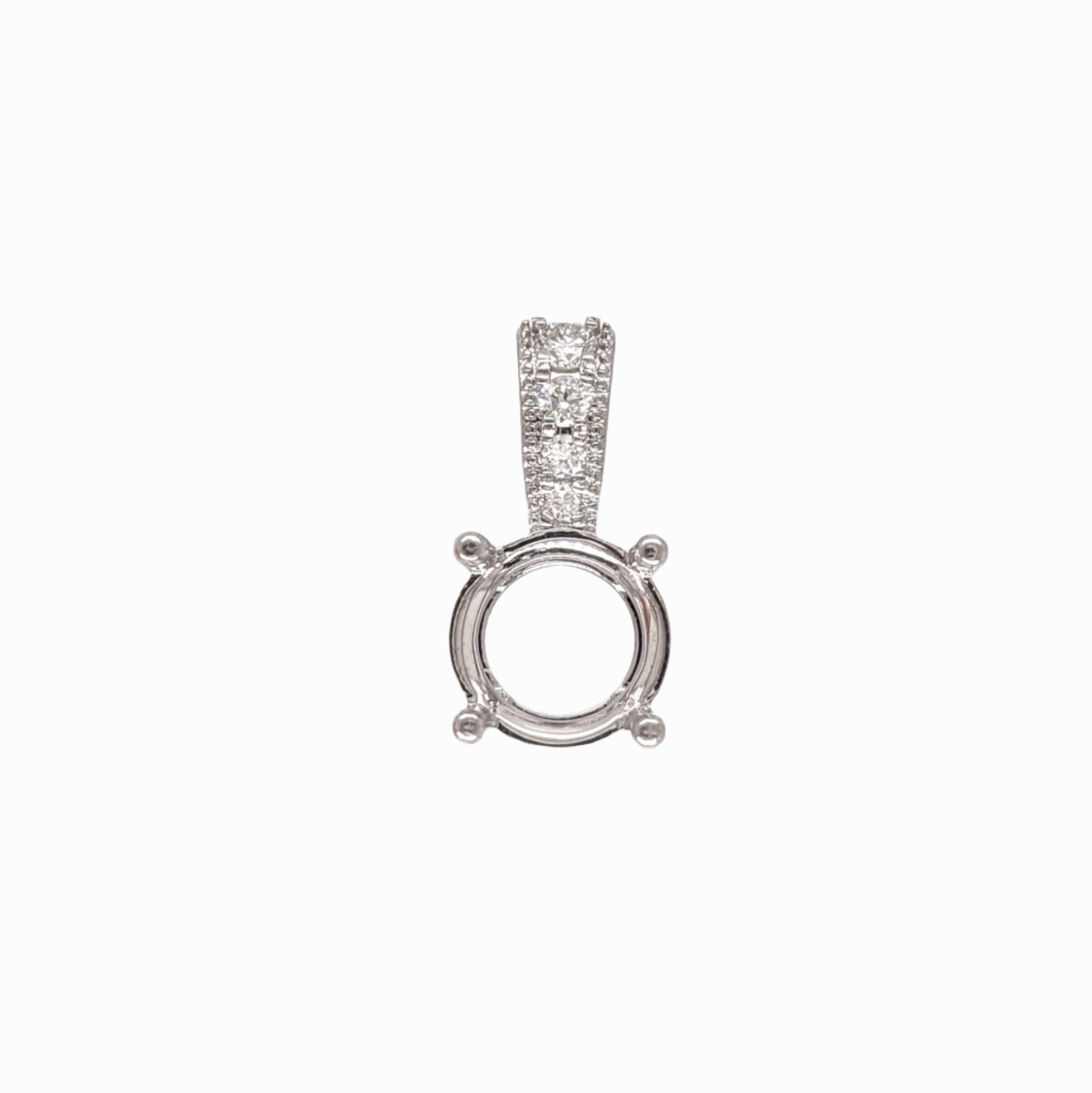 Pendant Semi Mount w Earth Mined Diamonds in Solid 14K Gold | Round 8.3mm