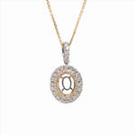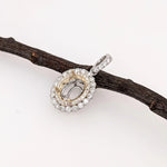 A classic double halo pendant design that can be made in dual or single tones of gold! A lovely option for any gemstone of your choice, with tons of sparkle, including a diamond studded shank. Make this your next timeless heirloom piece.