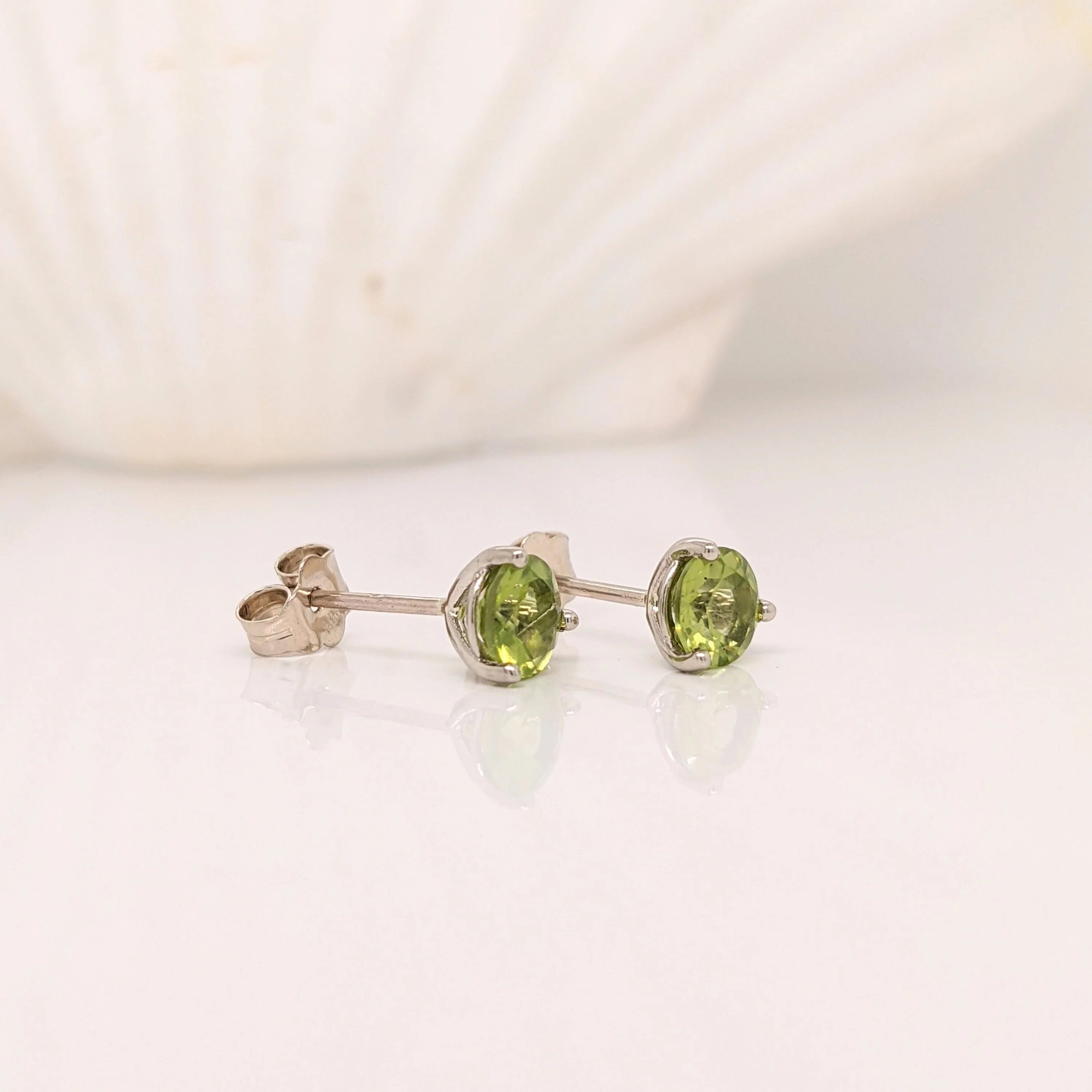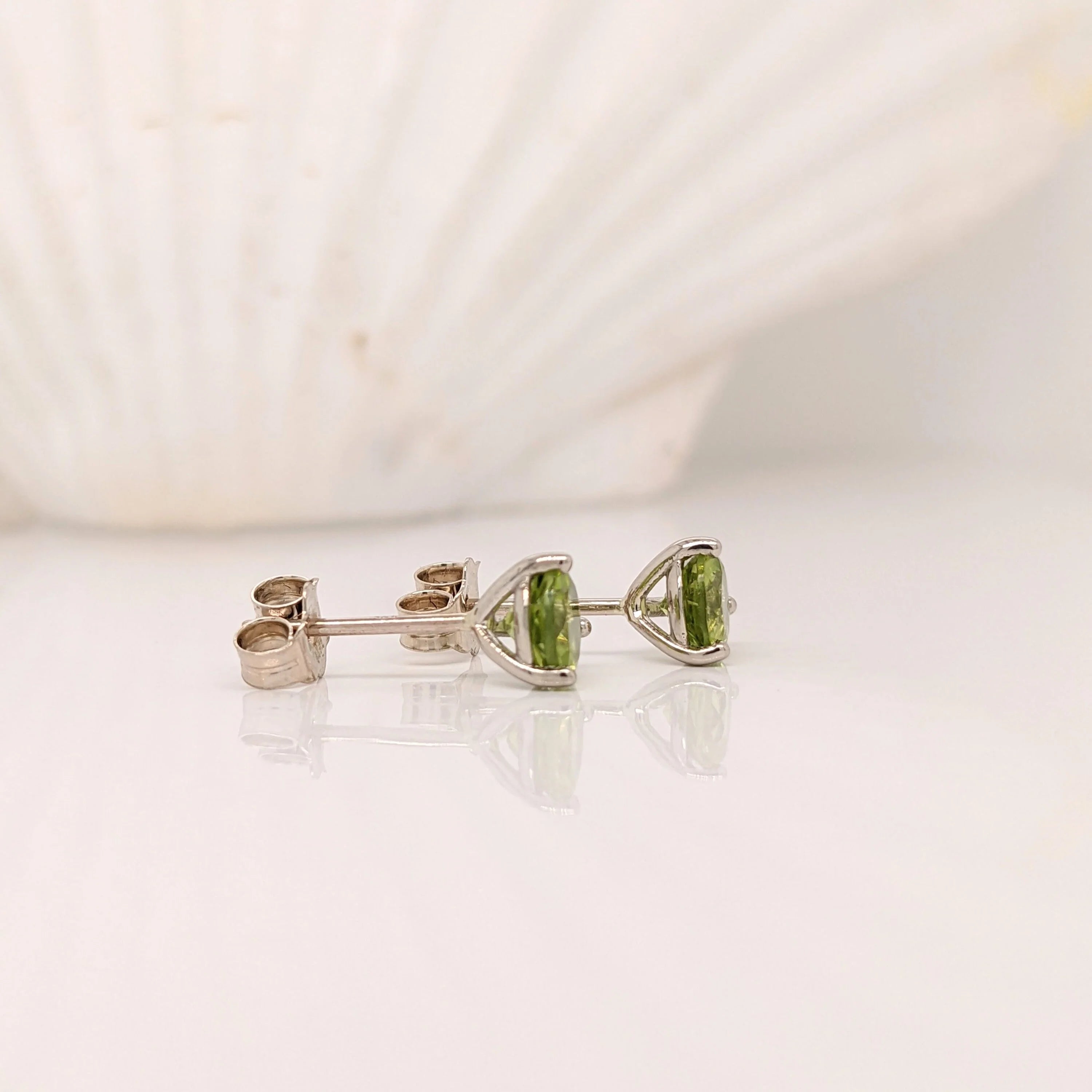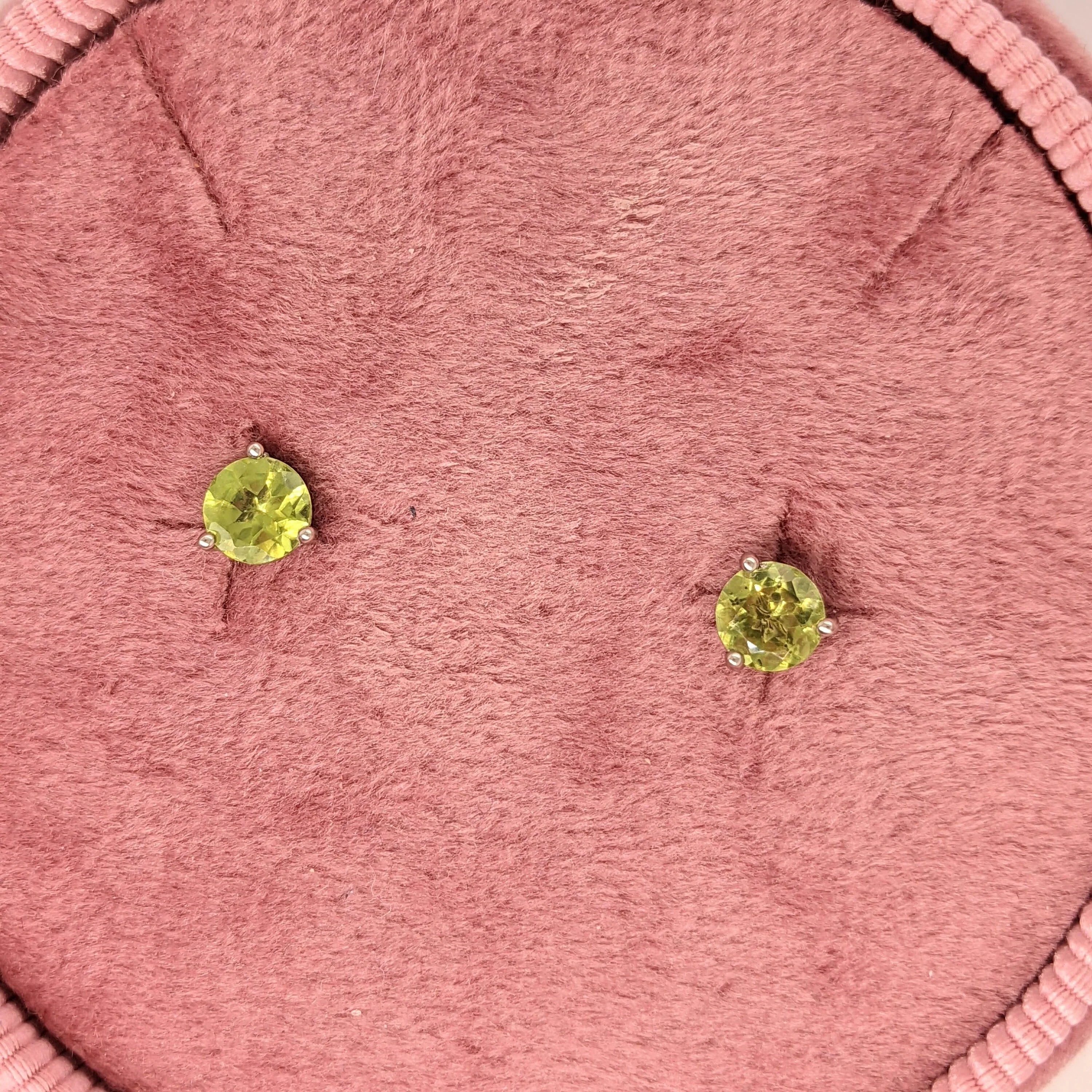 Peridot Round Martini Solitaire Stud Earrings | 3mm 4mm 5mm 6mm 7mm 8mm