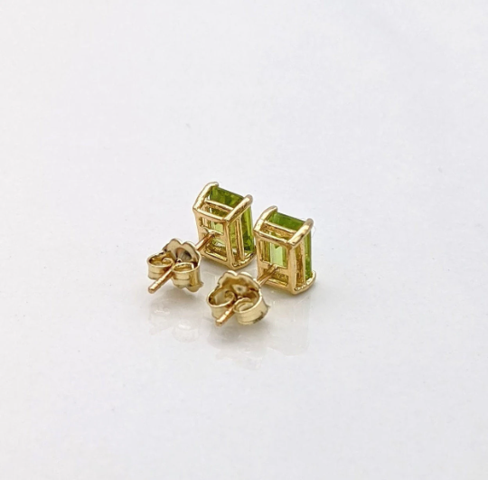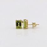 Peridot Emerald Cut Solitaire Stud Earrings | 6x4mm 7x5mm 8x6mm 9x7mm 10x8mm