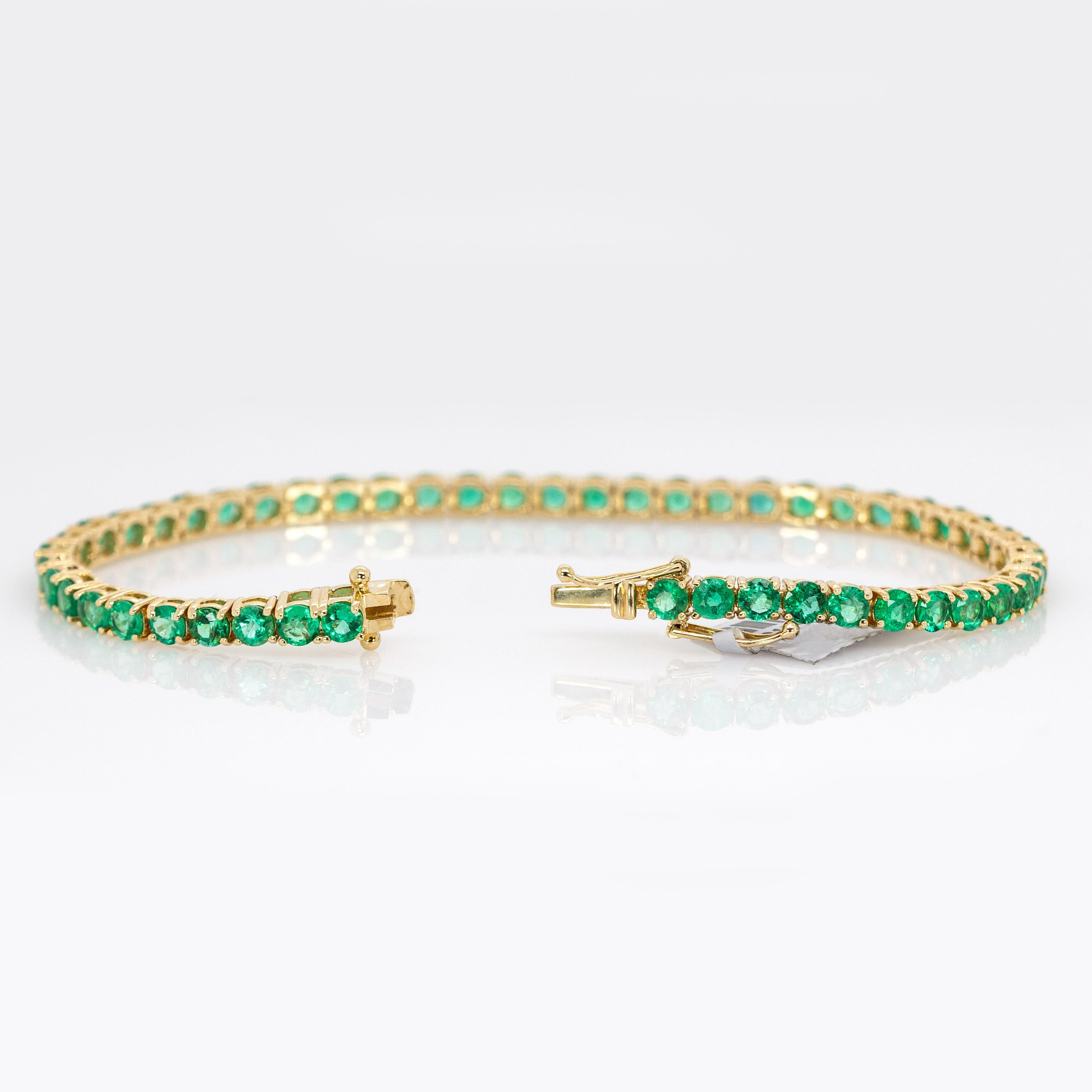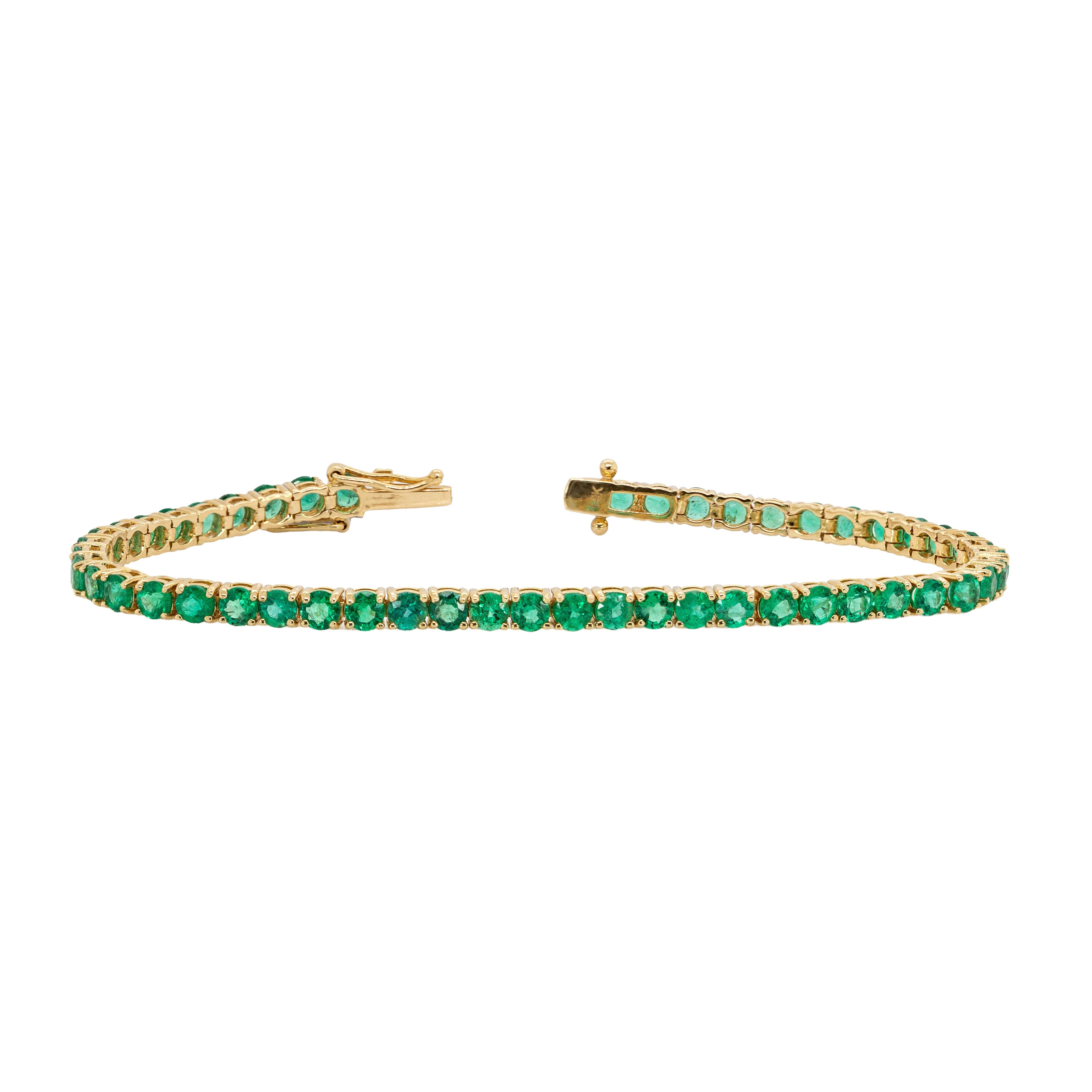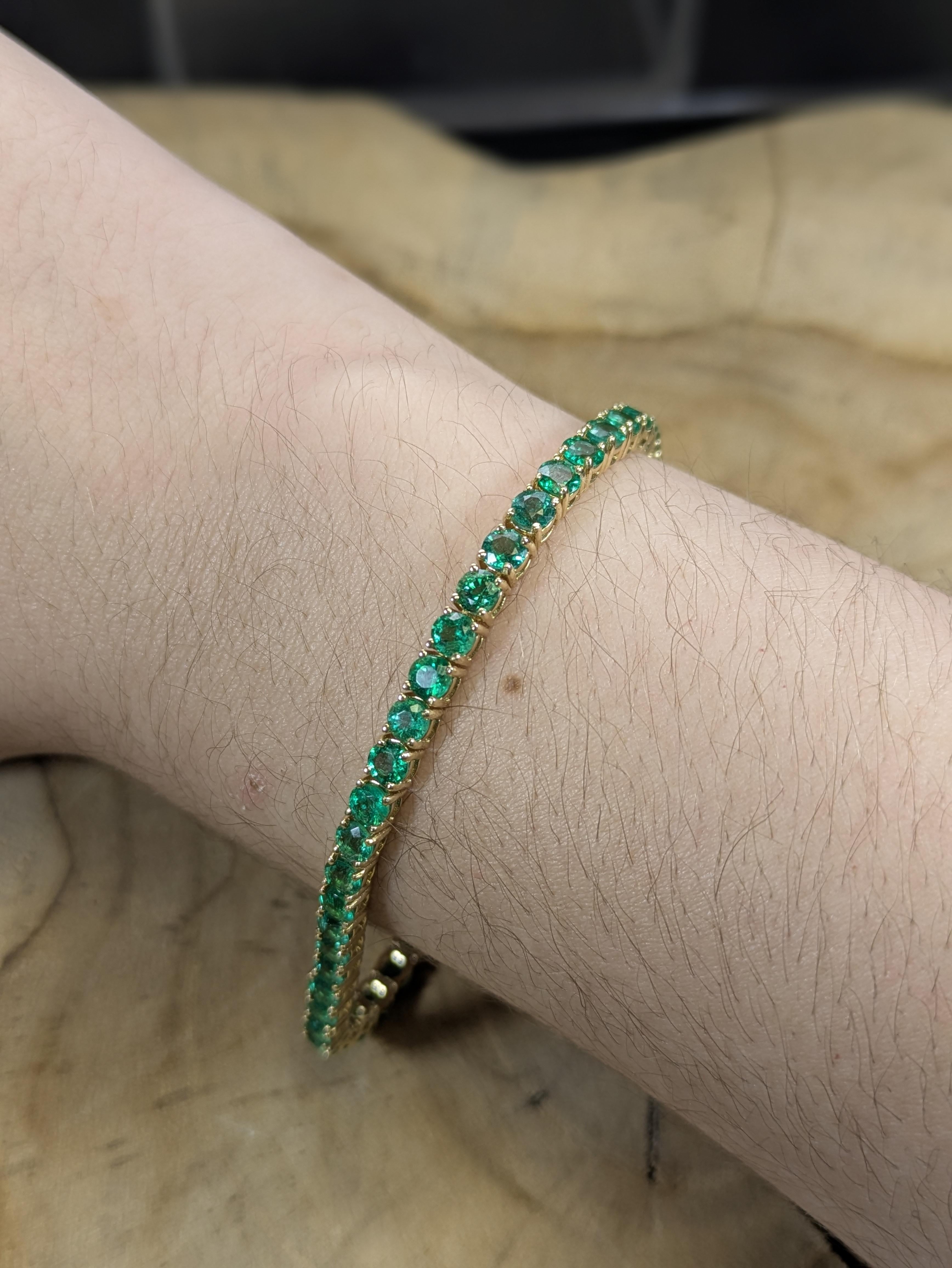 Stella 14K Solid Gold Zambian Emerald Tennis Bracelet | Round 3.4mm | Customizable