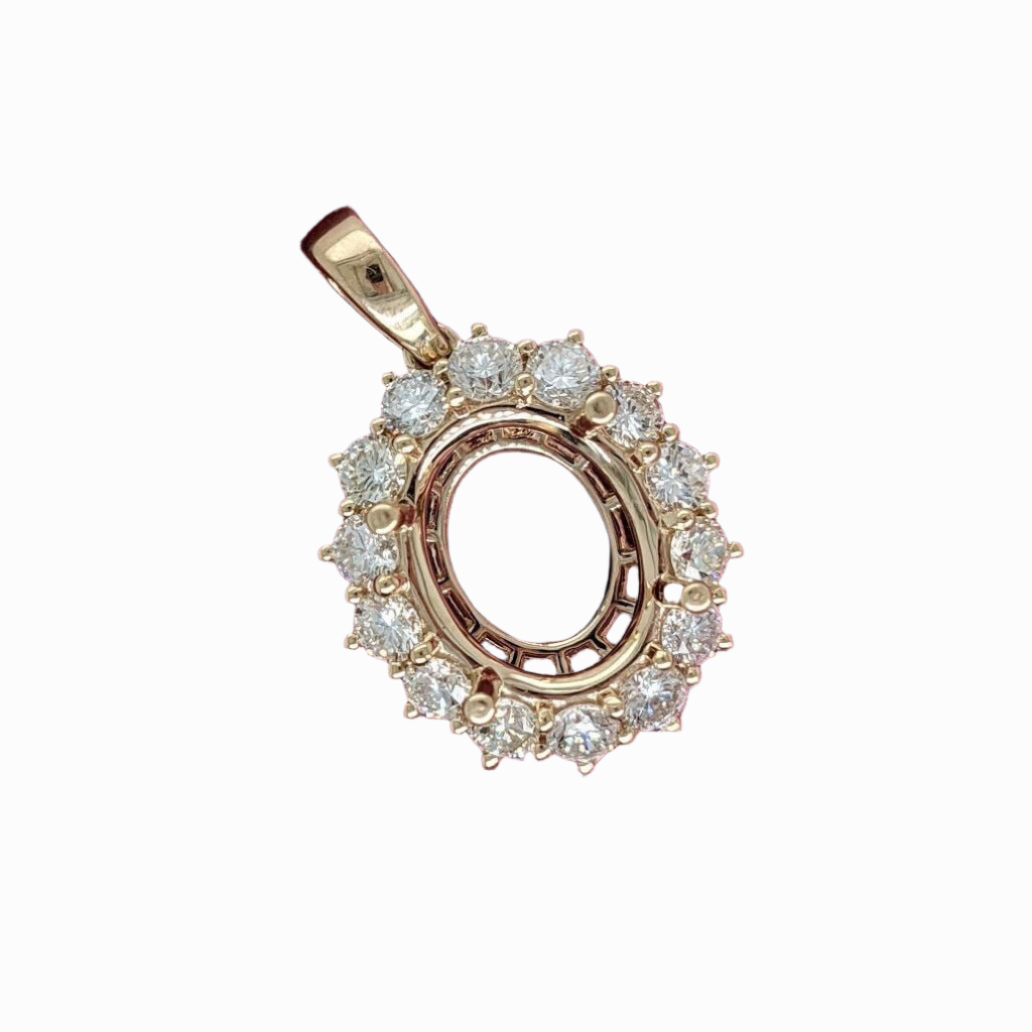 Pretty Pendant Setting W Natural Diamond Halo in 14K Solid Gold | Oval Shape | Customizable