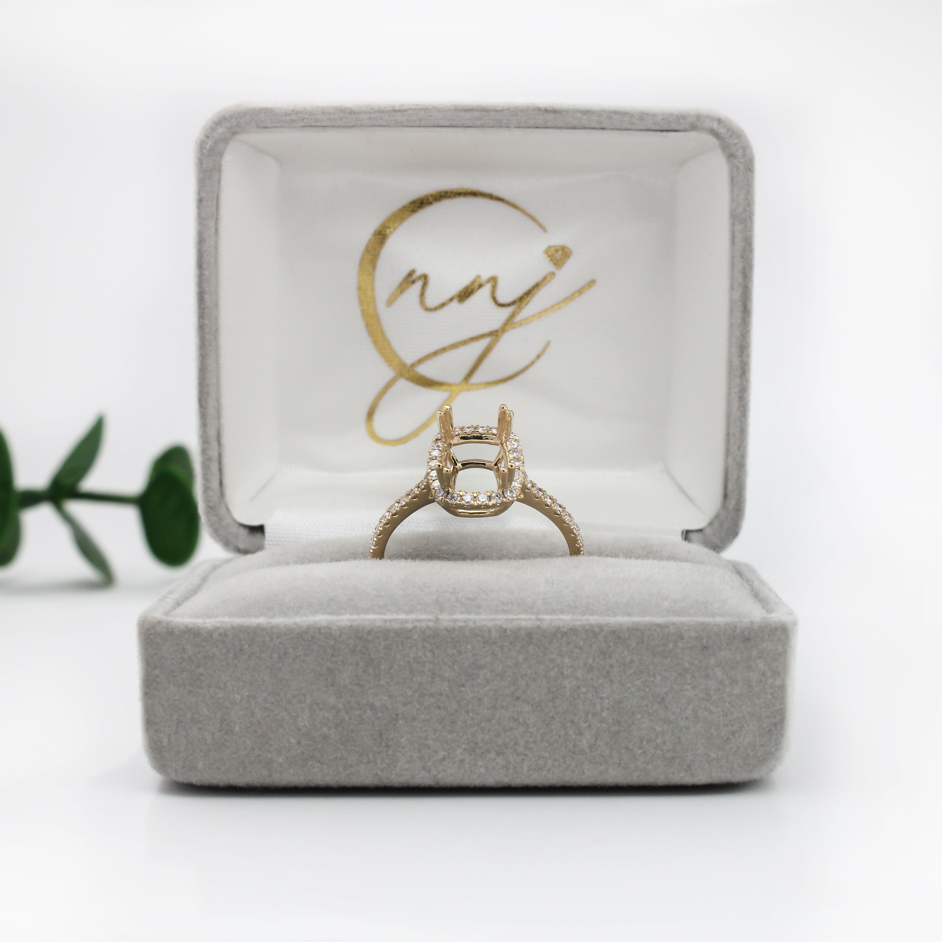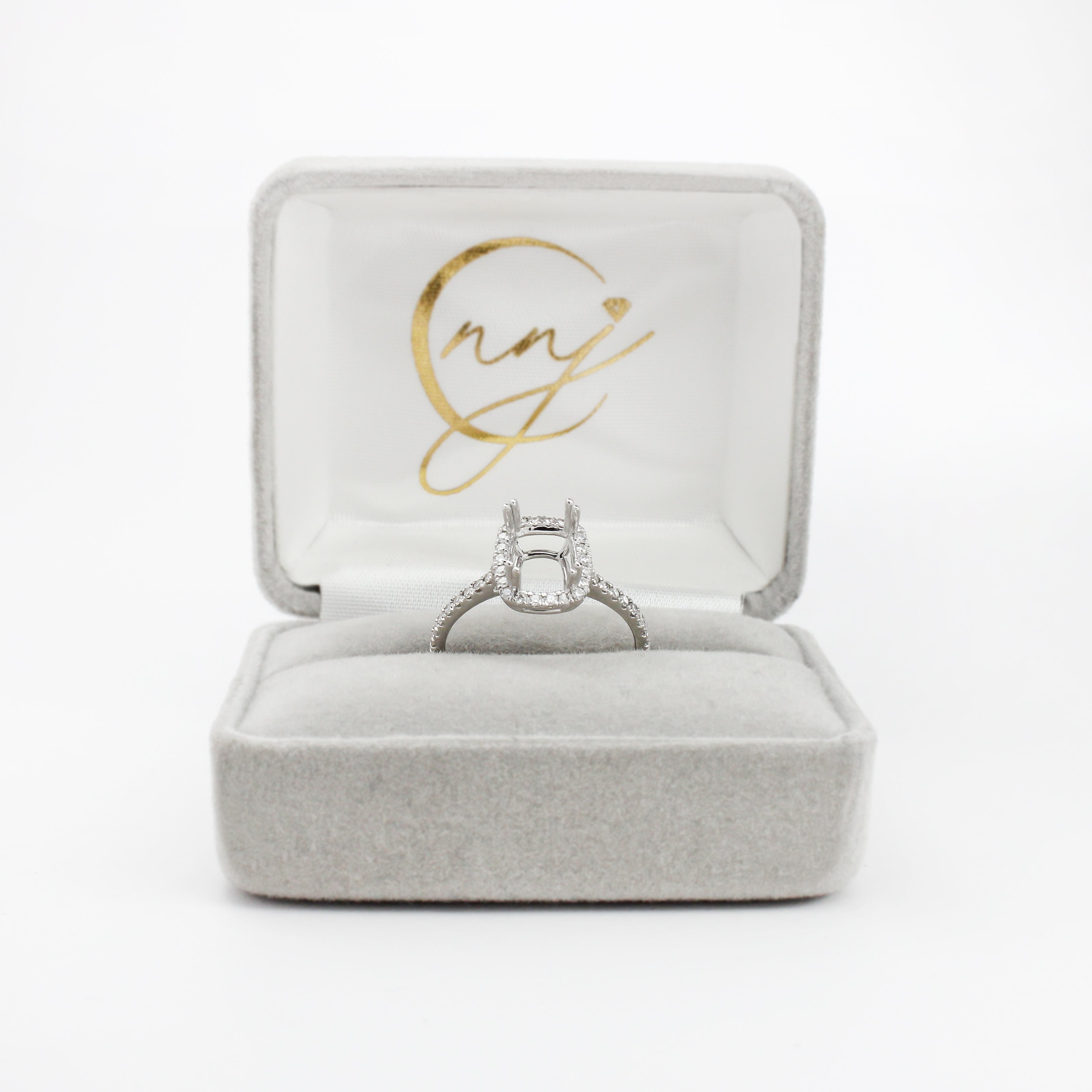 This beautiful ring semi mount features an 8x6mm cushion shaped basket with natural earth mined diamonds set in solid 14k gold. This ring setting would be perfect for the center gemstone of your choice and can be a lovely birthstone gift for your loved ones!