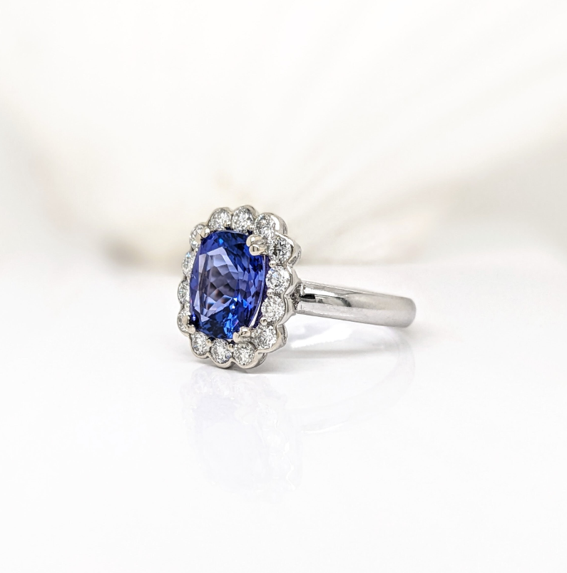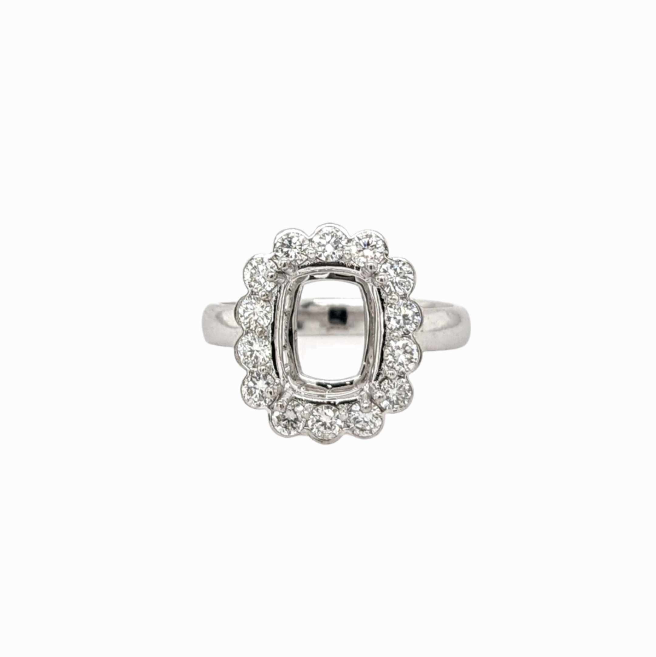 This beautiful ring semi mount features a 9.5x7.5mm cushion shaped basket with a halo of natural earth mined diamonds set in solid 14K gold. This ring setting would be perfect for the center gemstone of your choice and can be a lovely birthstone gift for your loved ones!