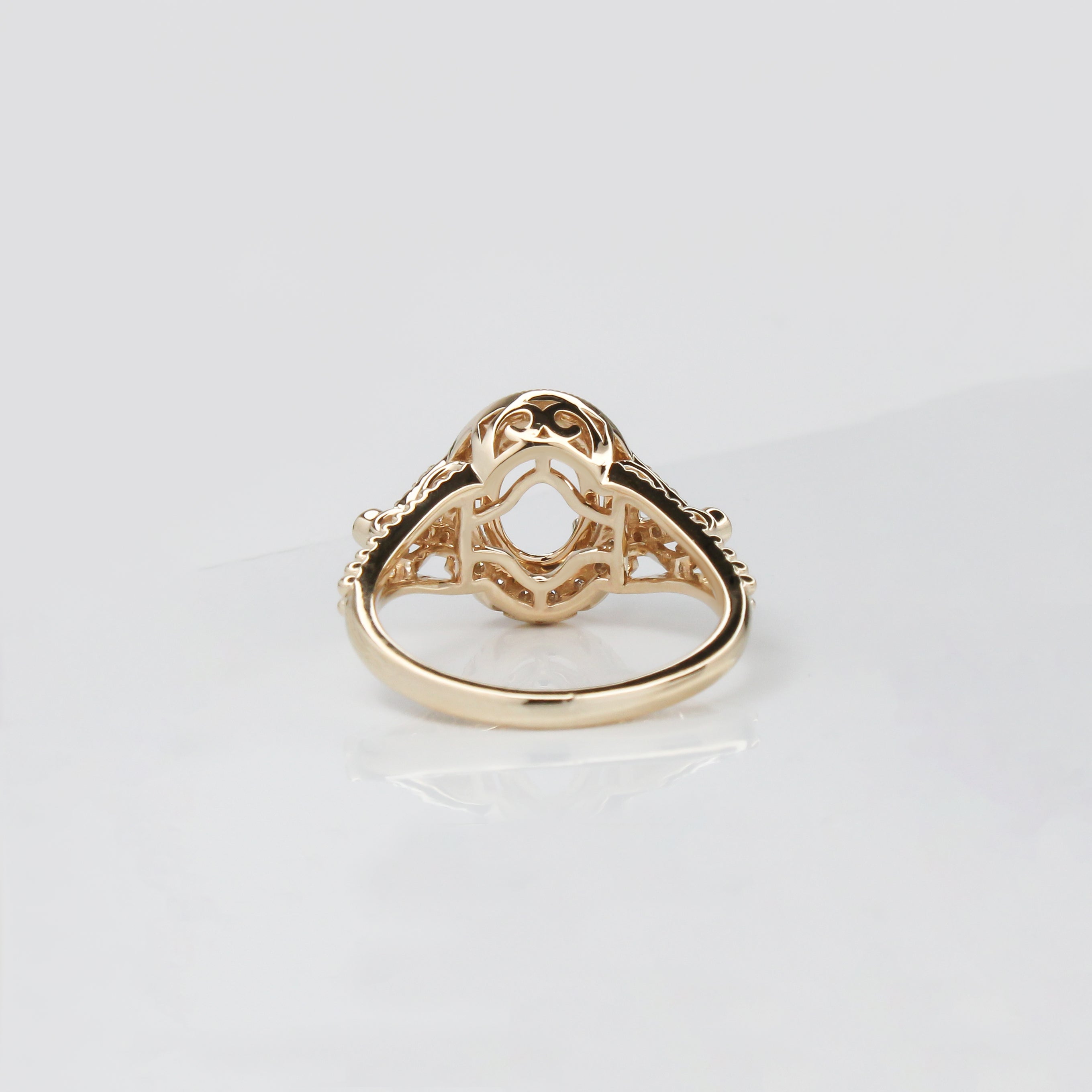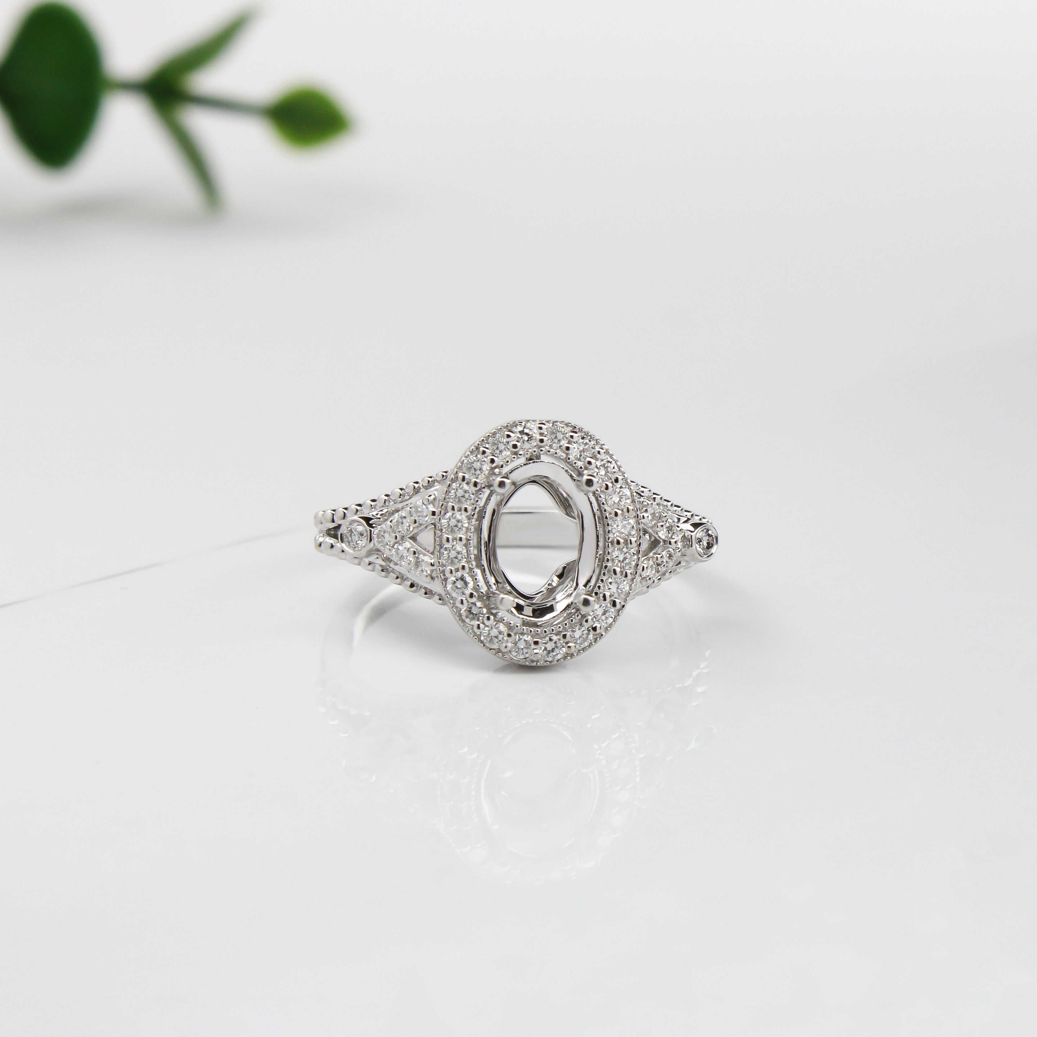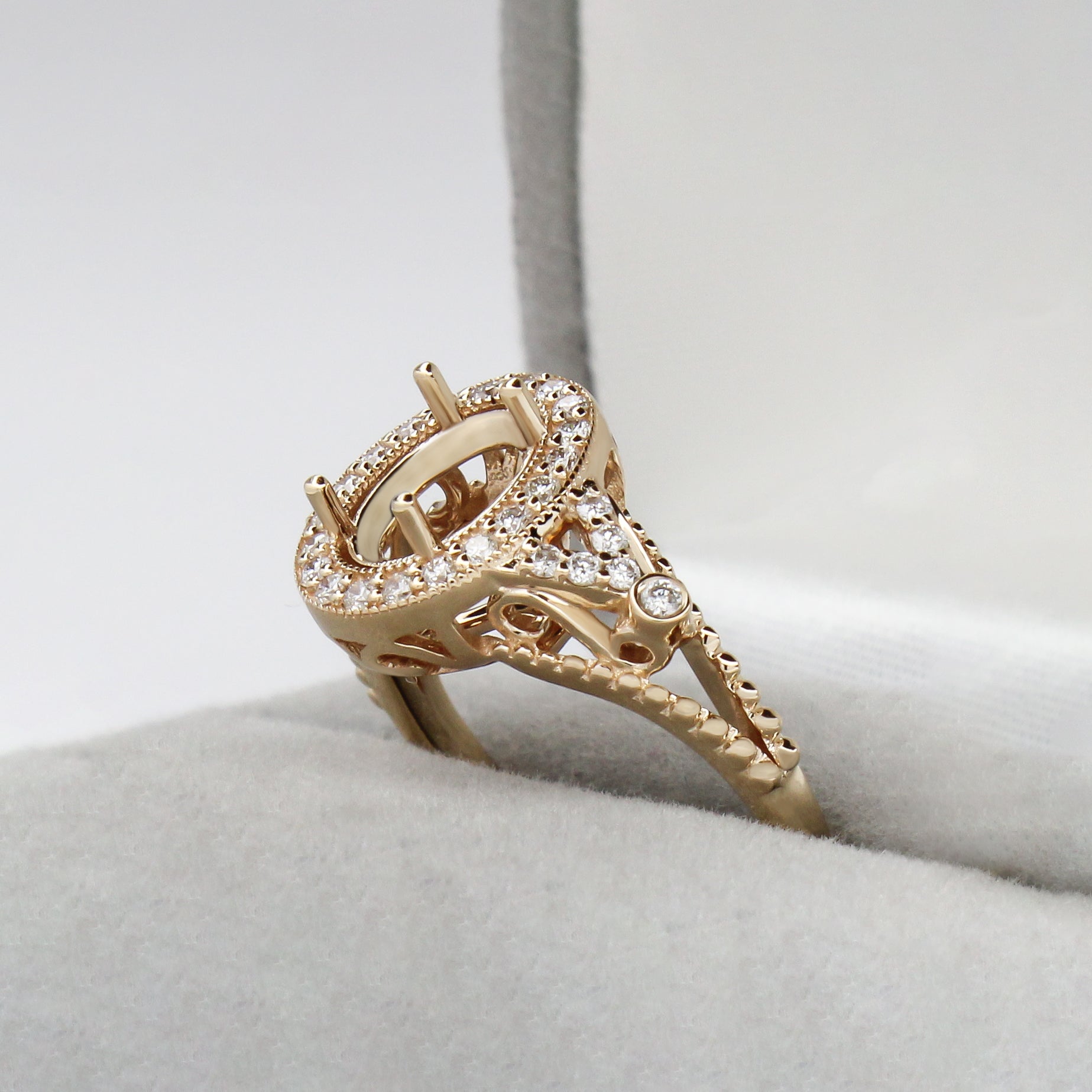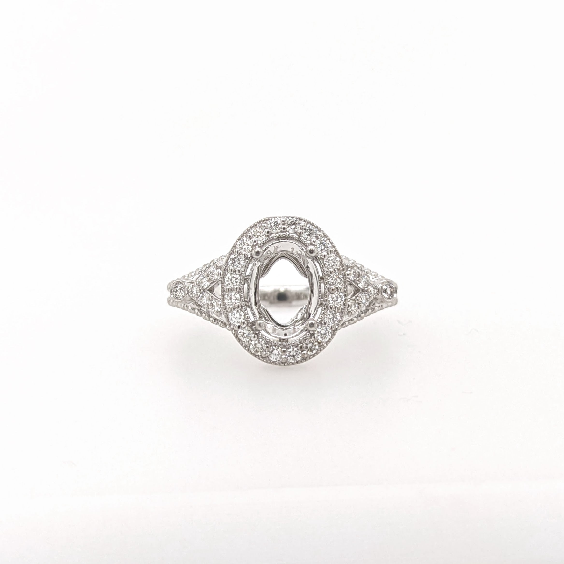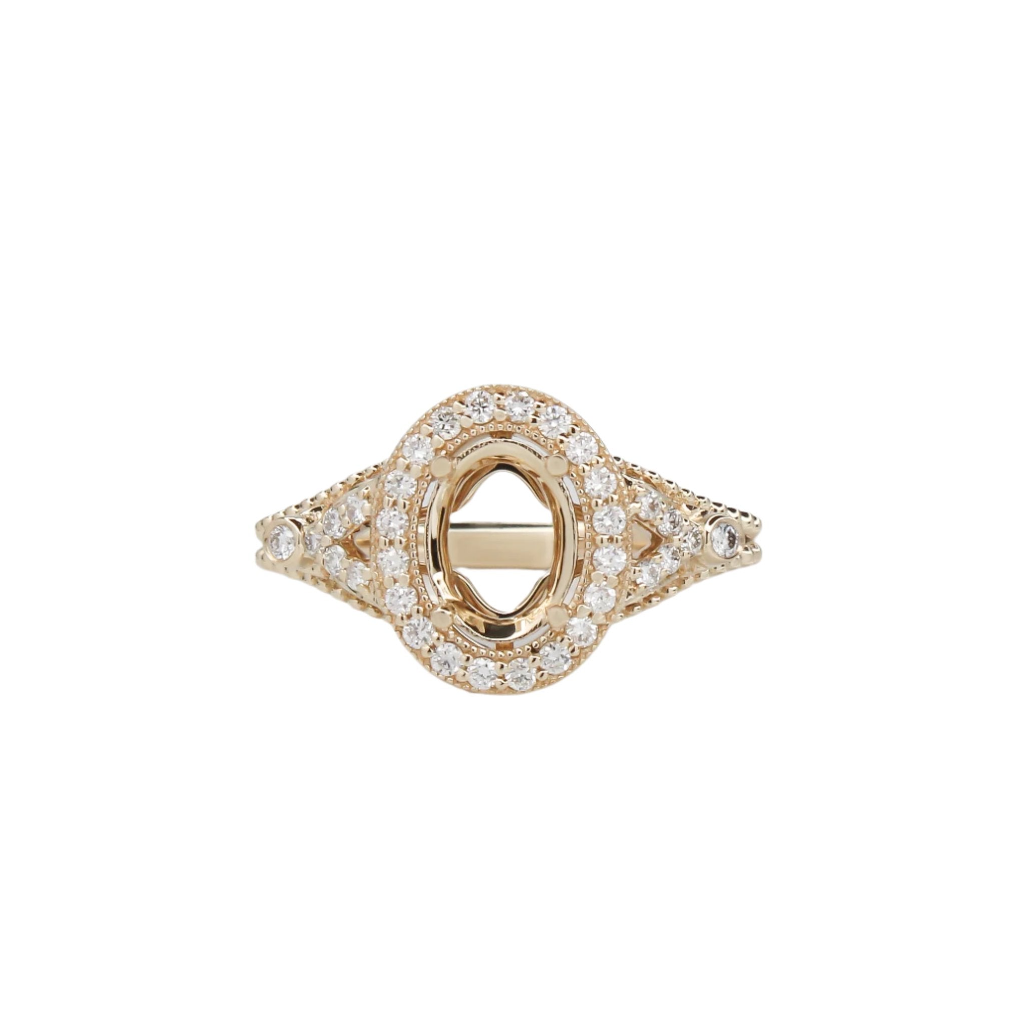 Ring Semi Mount w Earth Mined Diamonds in Solid 14K Gold | Oval