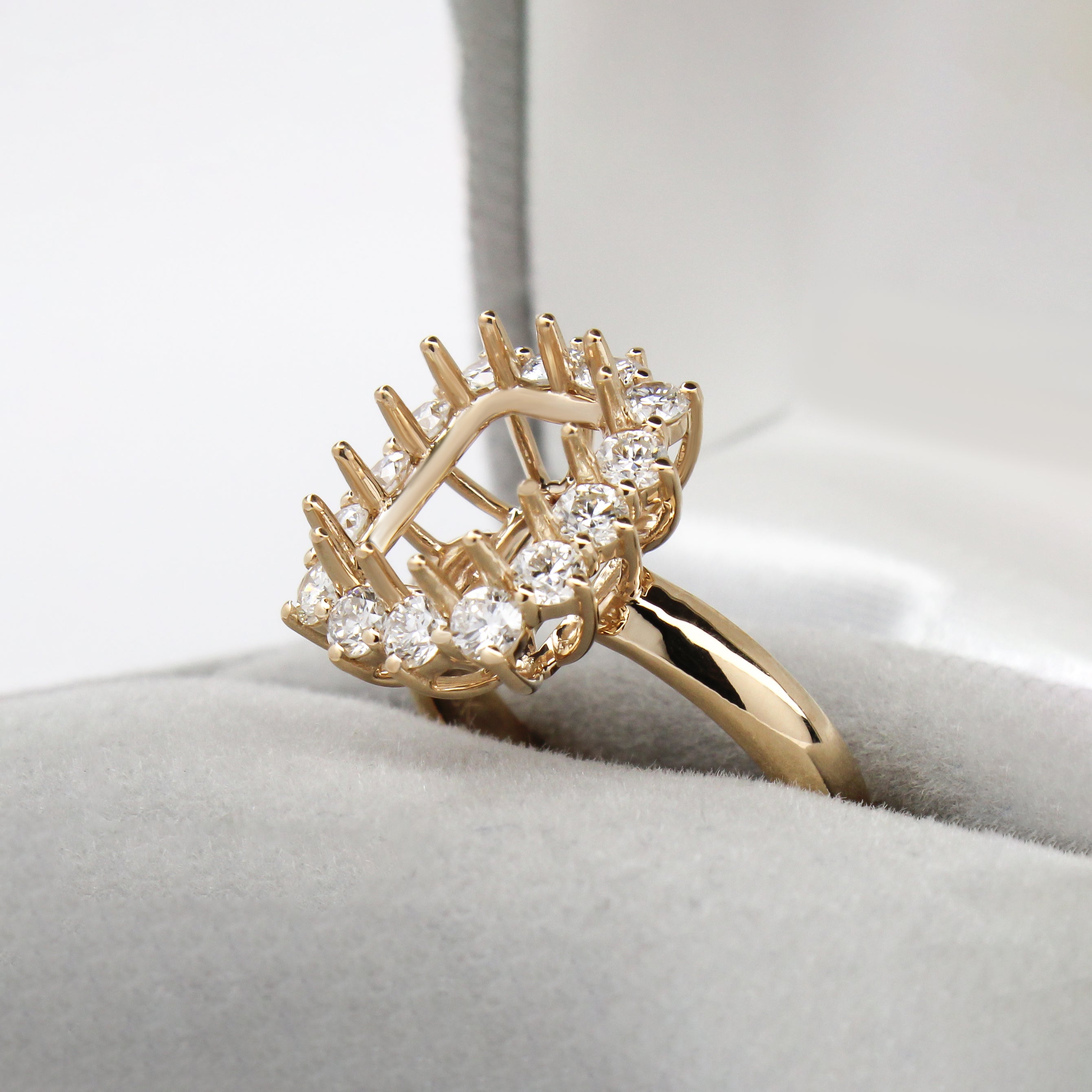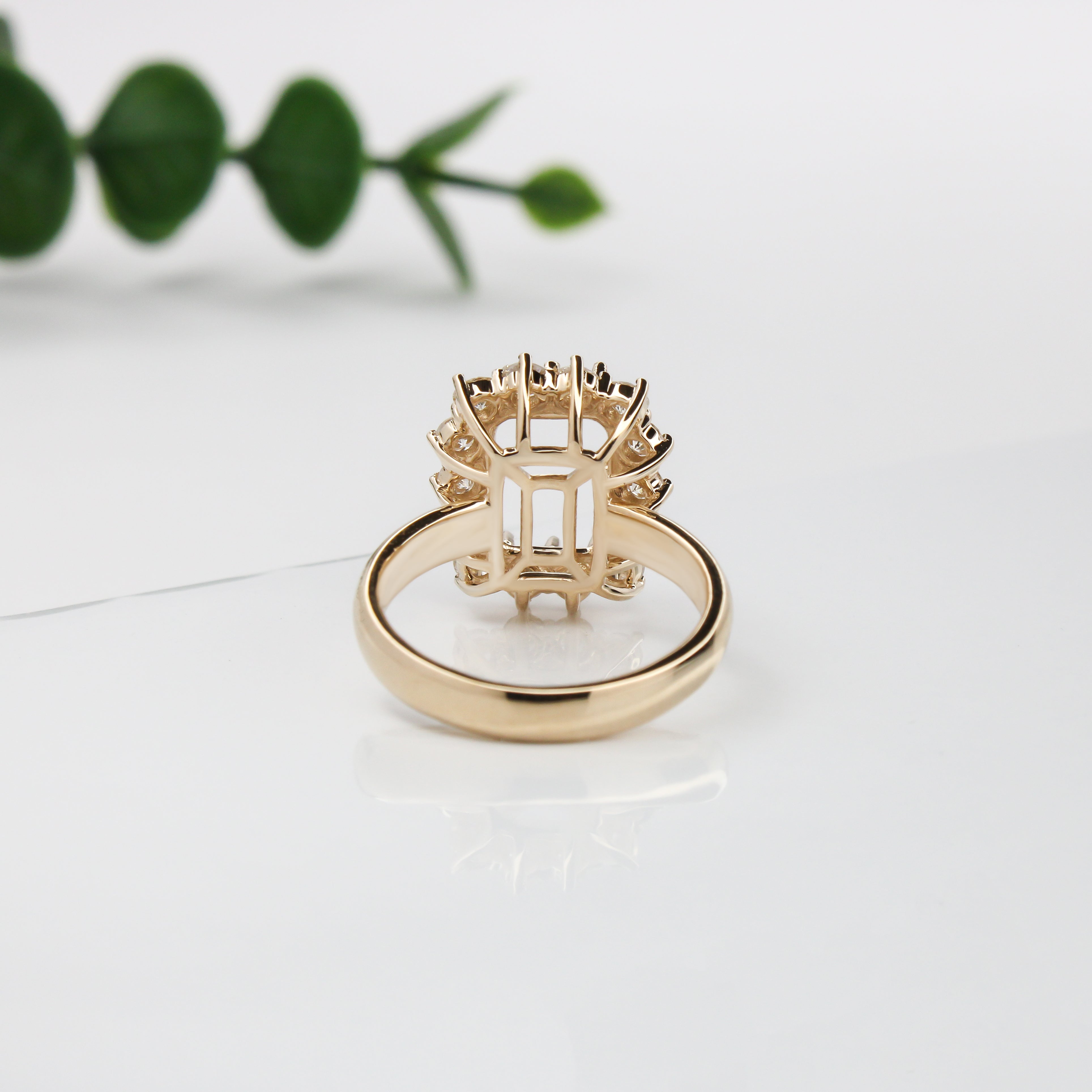 Alice Ring Semi Mount w Earth Mined Diamonds in Solid 18K Gold | Emerald Cut
