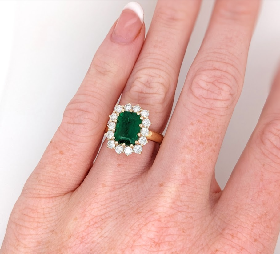 This beautiful ring semi mount features an emerald cut basket with a halo of natural earth mined diamonds set in solid 18K gold. This ring setting would be perfect for the center gemstone of your choice and can be a lovely birthstone gift for your loved ones!