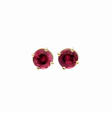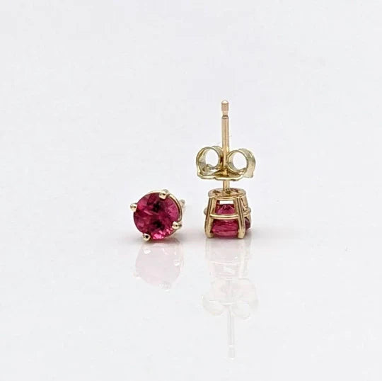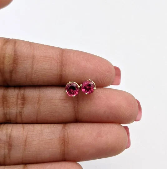 Rubellite Tourmaline Four Prong Studs in Solid 14K Gold | Round 4.5mm 6mm