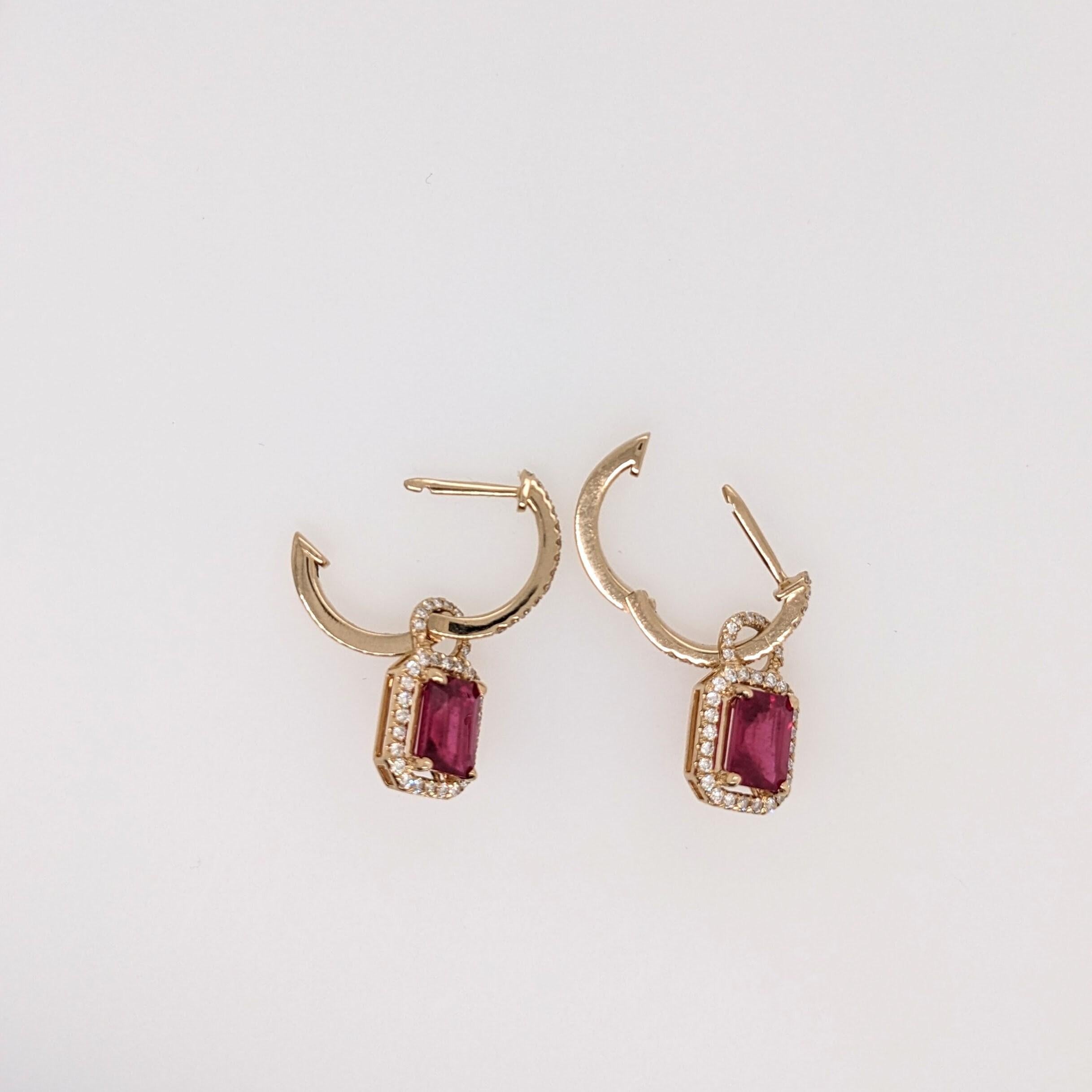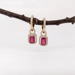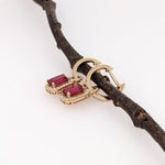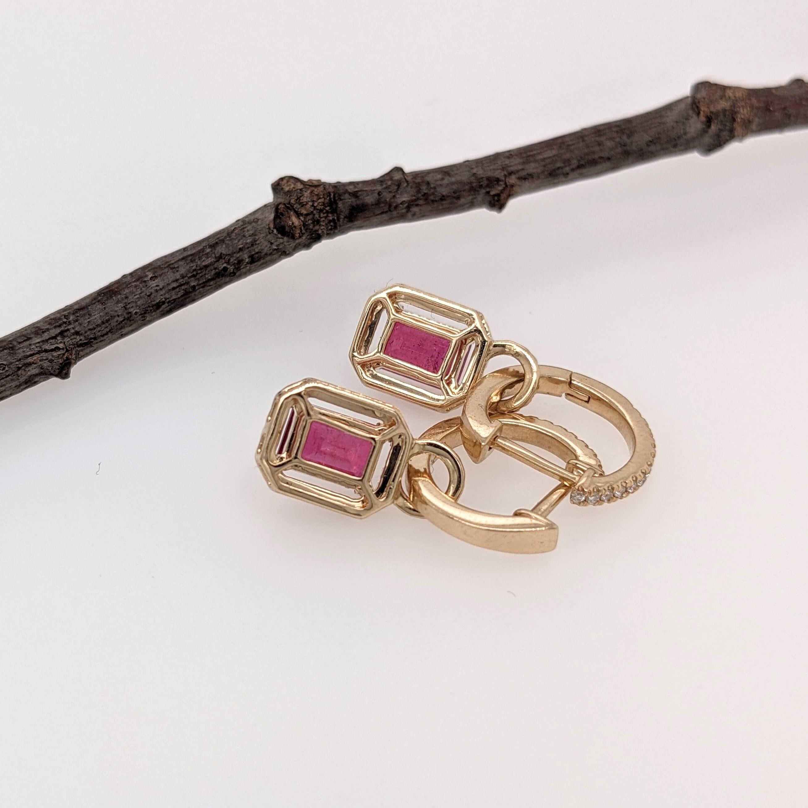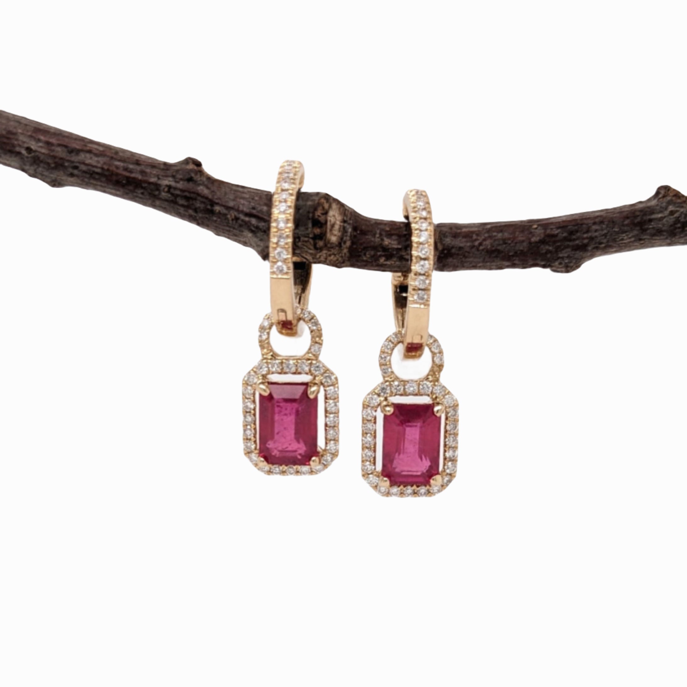 An NNJ favorite earring design, featuring 7x5mm emerald cut rubies set in 14K solid yellow gold with natural diamond accents. Perfect for July birthstone-lovers, these rubies and diamonds will add a touch of vibrant color and sparkle to your look.