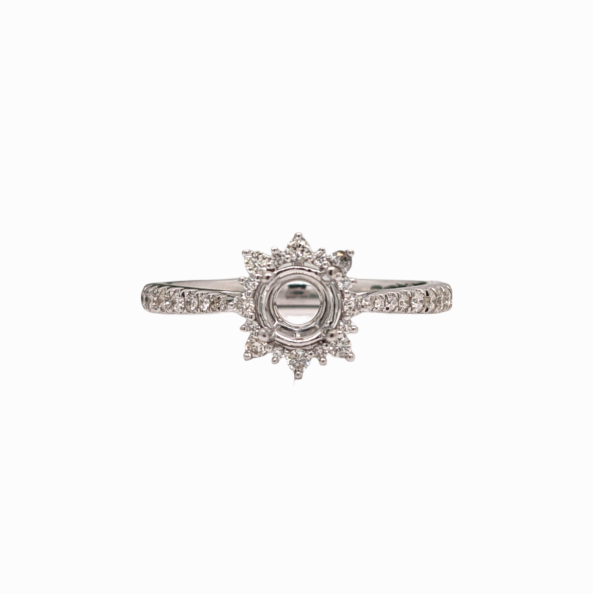 Snowflake Diamond Halo Ring Setting in 14K Solid Gold | Round Shape | Pave Diamond Shank | Customizable