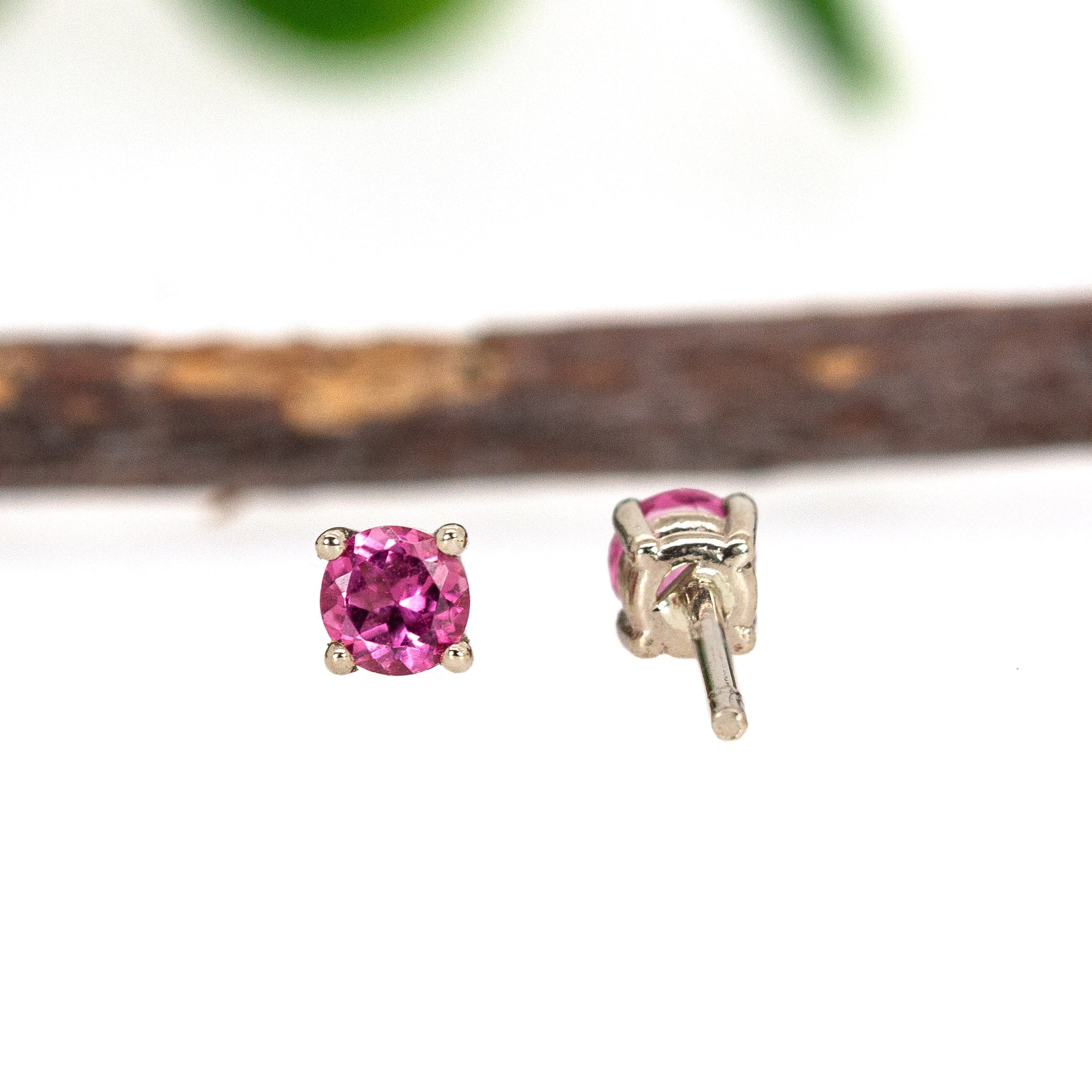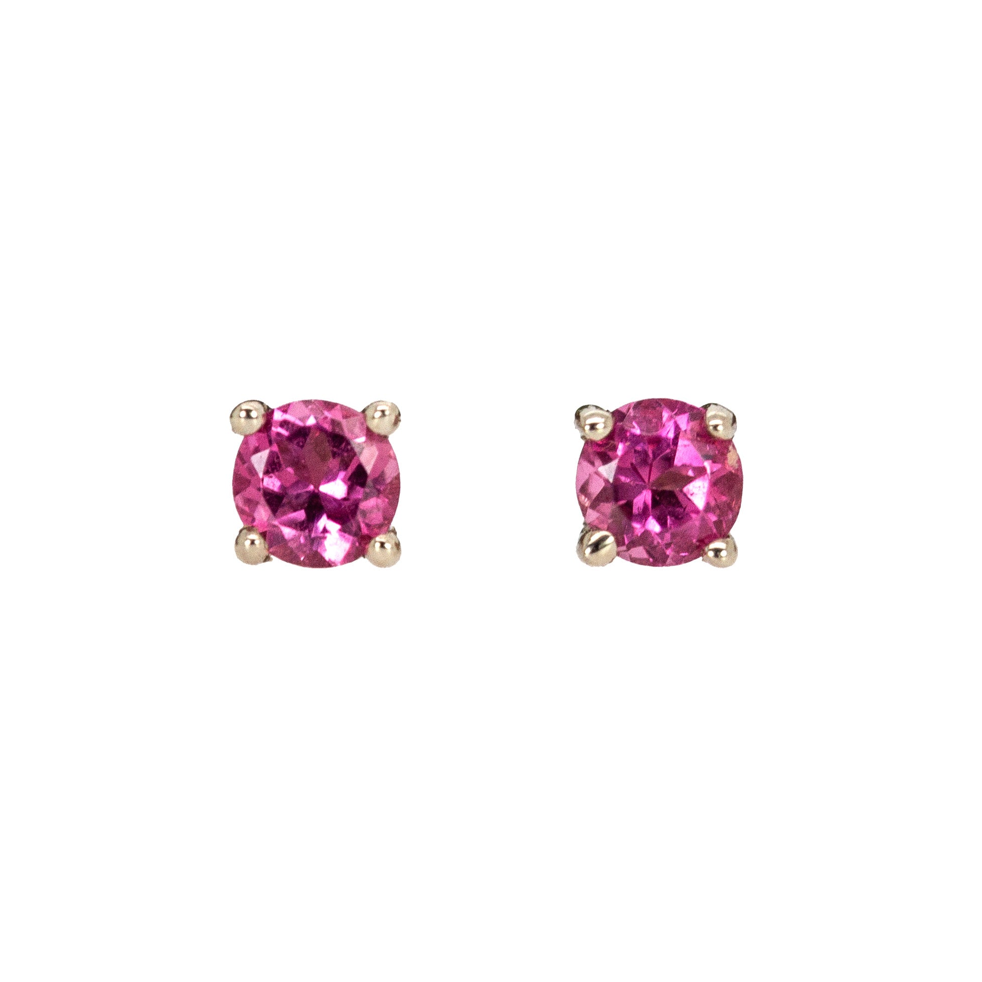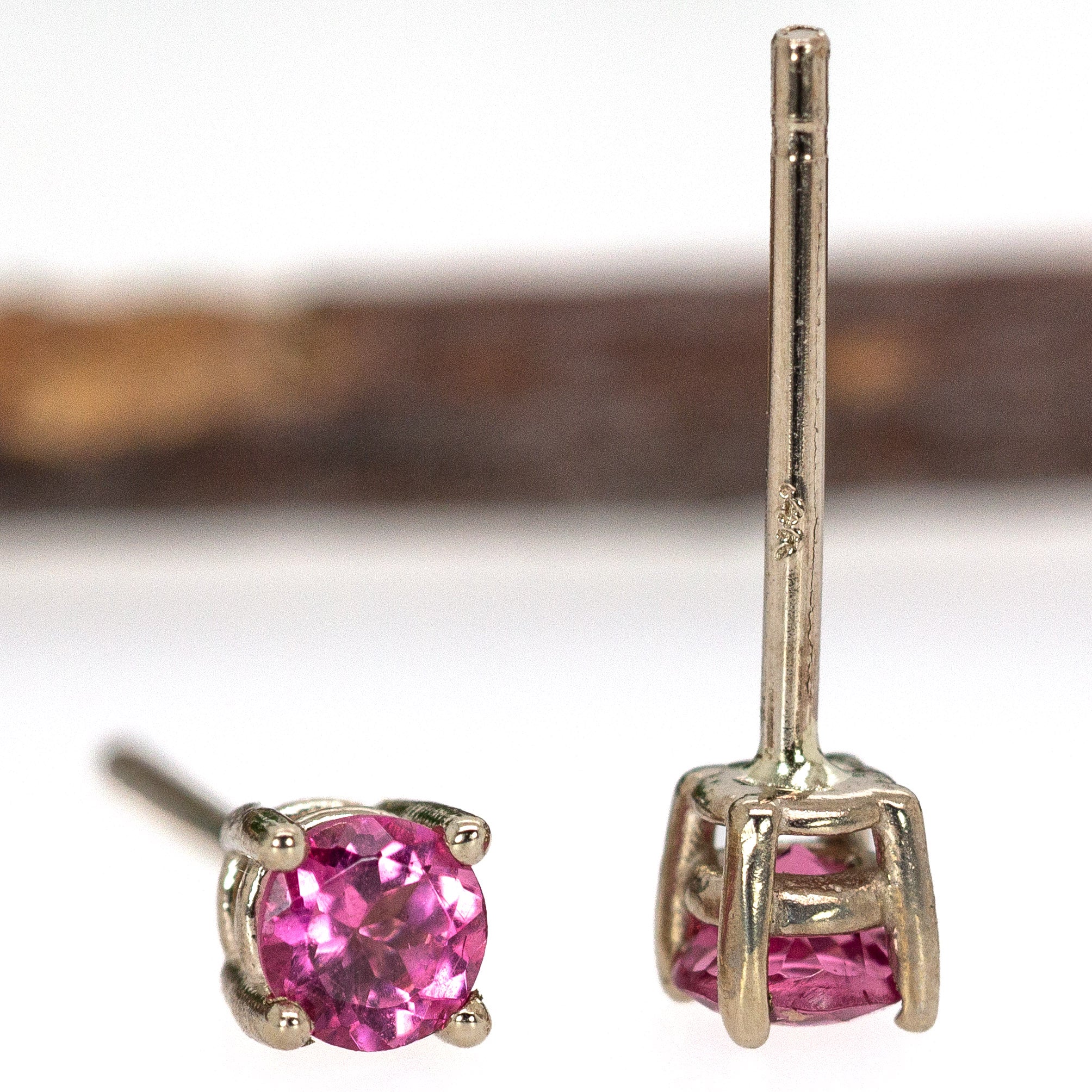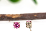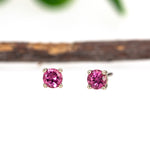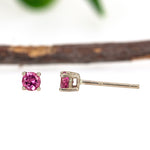 14K Solid Gold Pink Tourmaline Solitaire Studs | Round 3mm