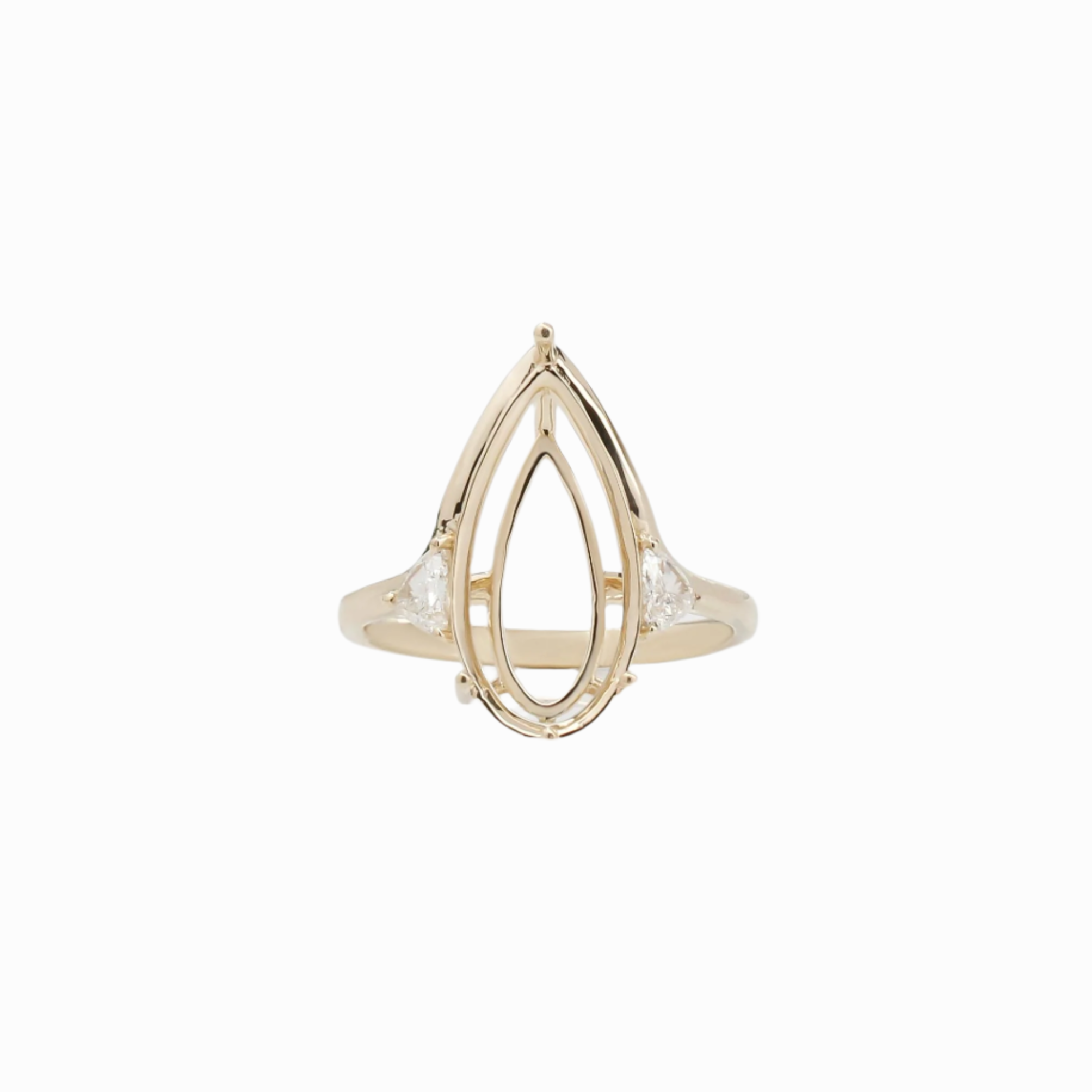Statement Ring Setting w Trillion Diamond Accents in 14K Solid Gold | Pear