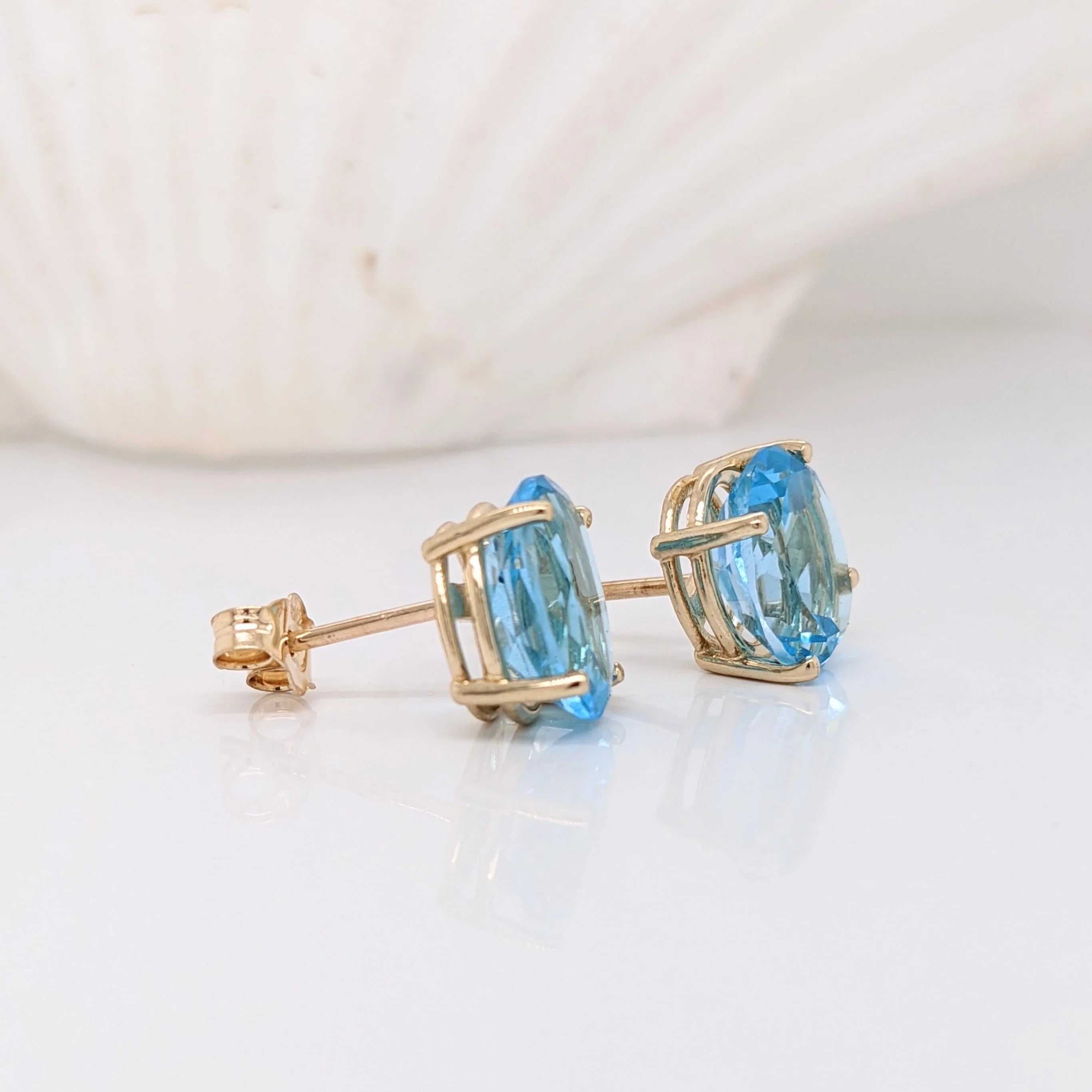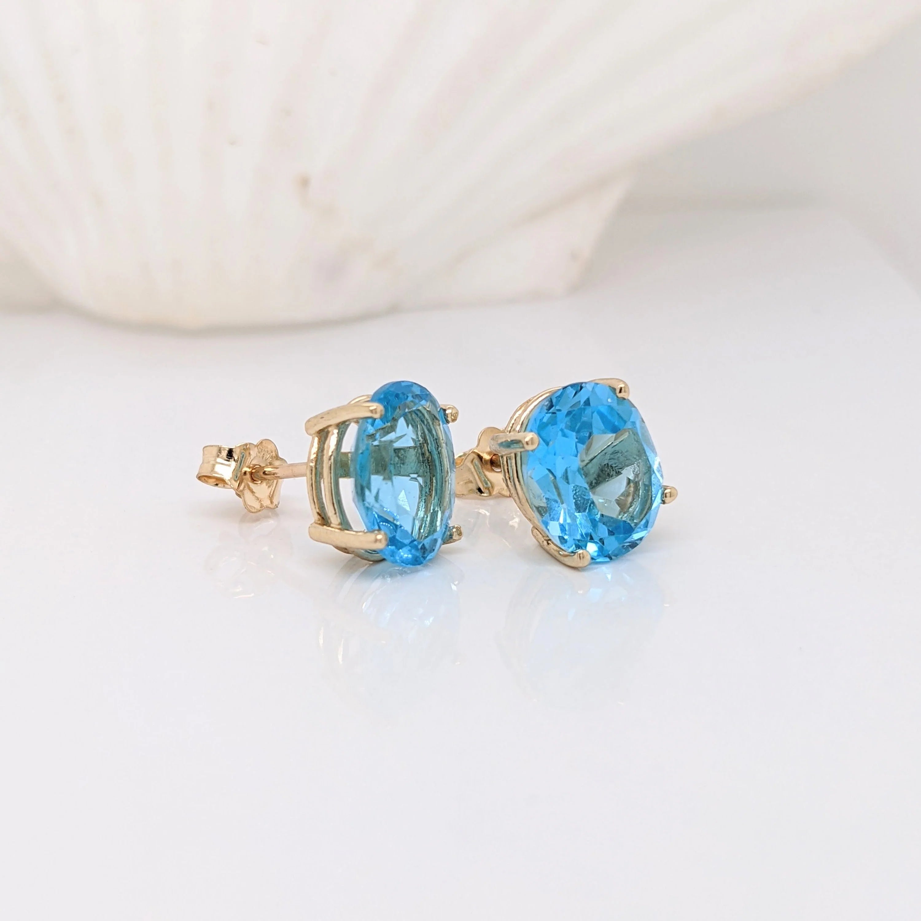 Beautiful Swiss Topaz oval solitaire studs in solid 14k gold. The featured swiss blue topaz sparkles excellently in these stud earrings! A push back closure clicks securely in place for easy and safe wear all day long :)