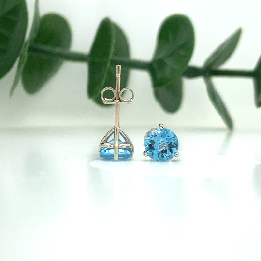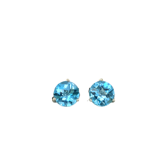 Swiss Topaz Round Martini Prong Solitaire Stud Earrings | 3mm 4mm 5mm 6mm 7mm 8mm