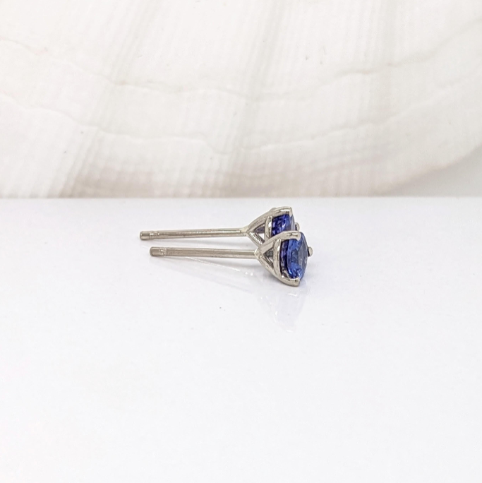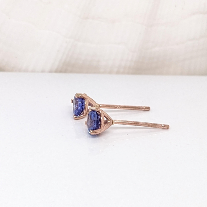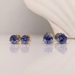 Tanzanite Martini Solitaire Stud Earrings | Round 3mm 4mm 5mm 6mm 7mm 8mm