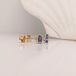 A martini design allows these beautiful tanzanite gemstones to be the star of the show. Their modest design makes them perfect to pair with other earrings.