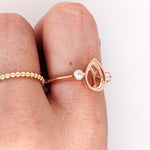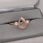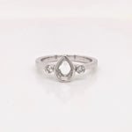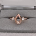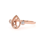 This beautiful 14k gold three-stone ring features a pear-cut semi-mount with bezel-set round natural diamond accents, creating a timeless and classic look. Enjoy the sparkle and brilliance of the diamond accents for a truly stunning effect.