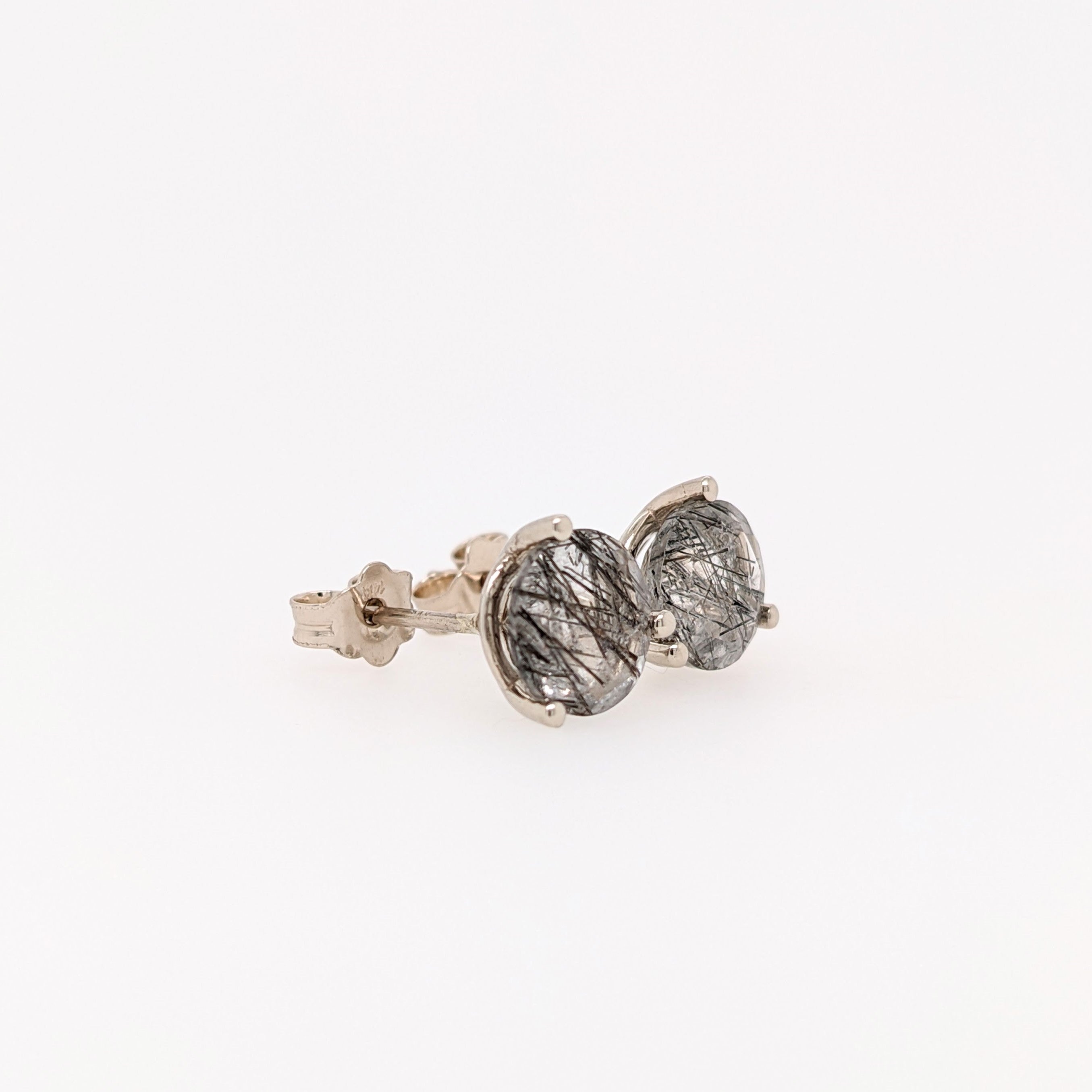 Tourmalinated Quartz Martini Studs in 14k Solid White, Yellow or Rose Gold | Round 7mm