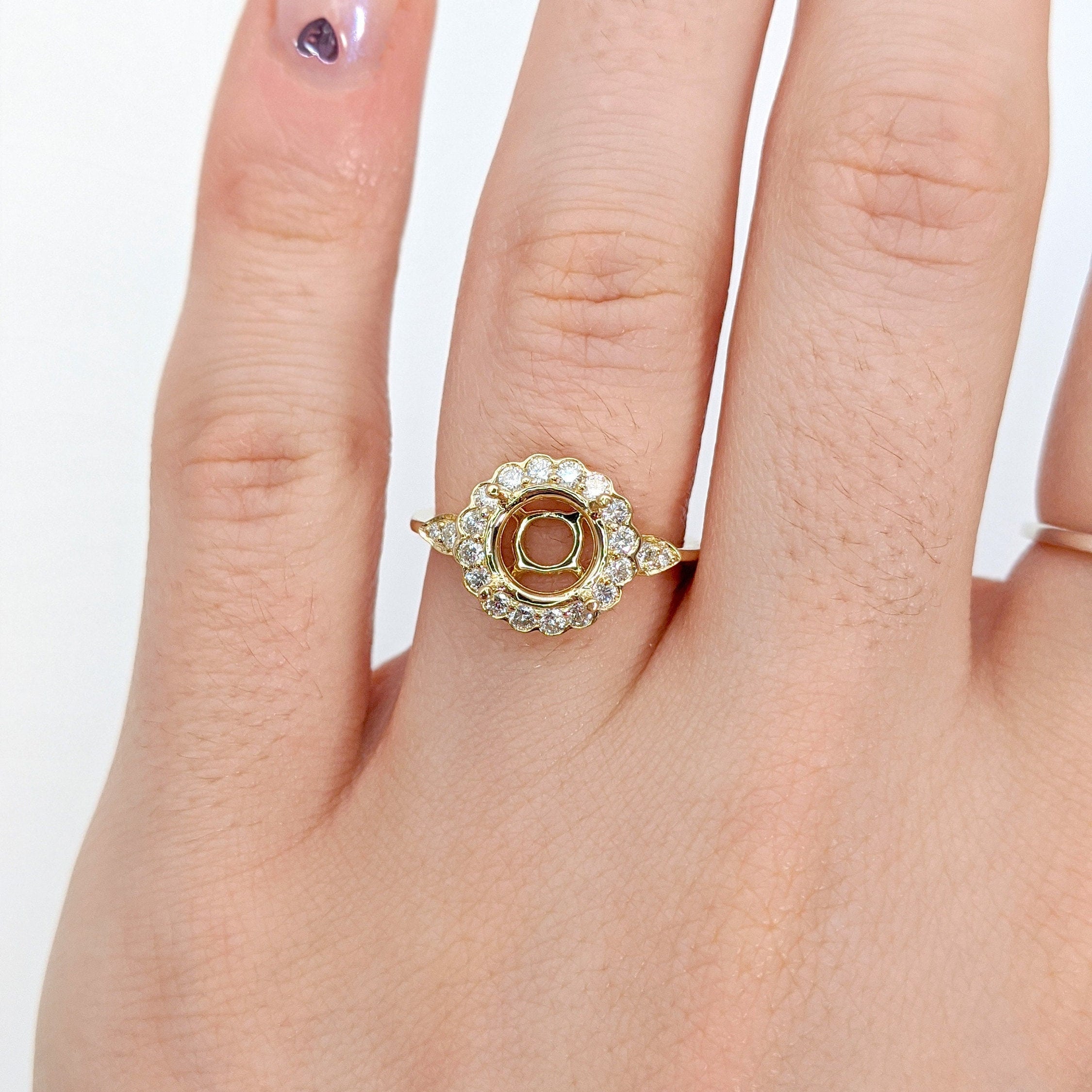 Sira 14k Solid Gold Natural Diamonds - Ring Setting | Round Shaped , 14mm