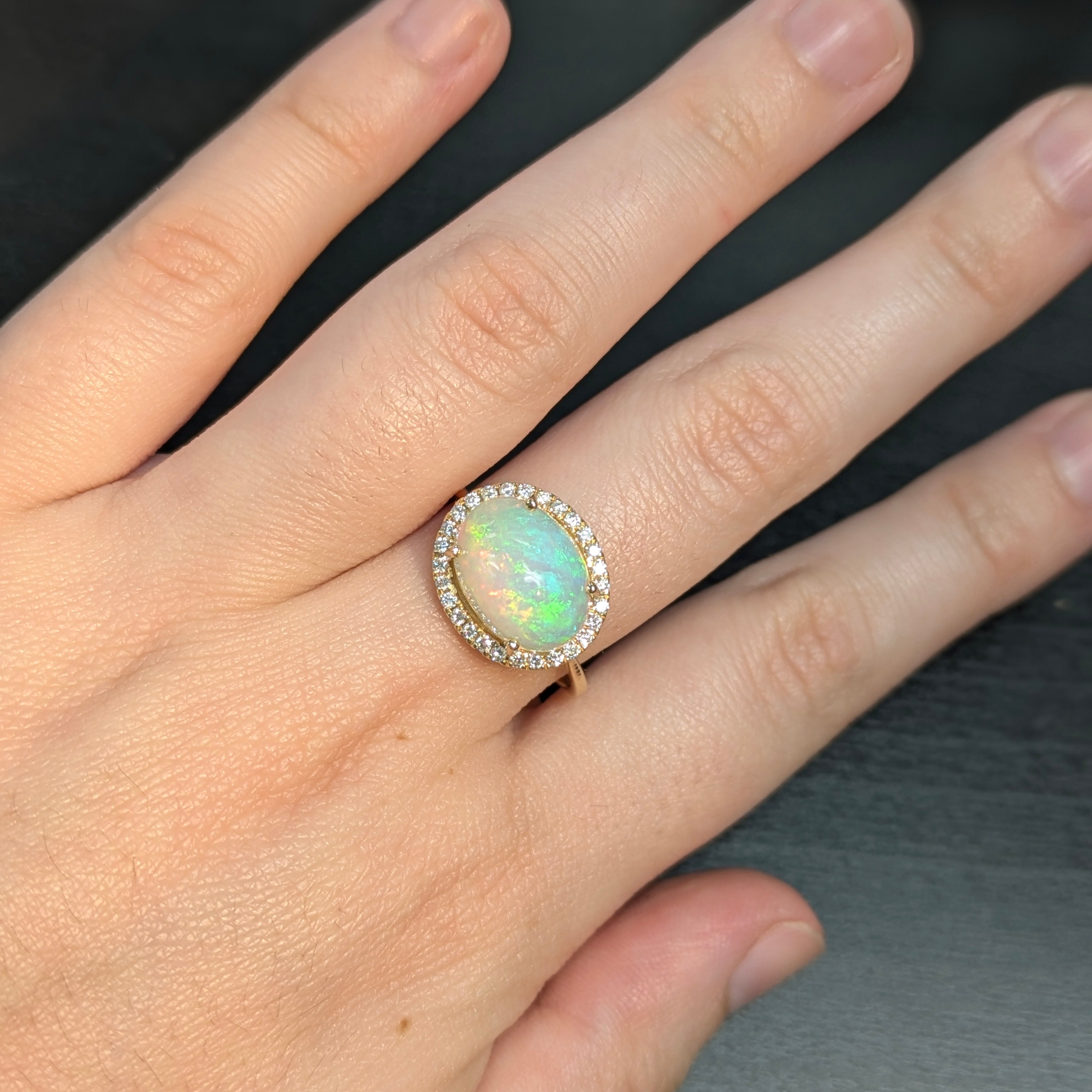 Anouk 14k Solid Yellow Gold Ethiopian Opal w Natural Diamond Accents Ring | 12x10mm