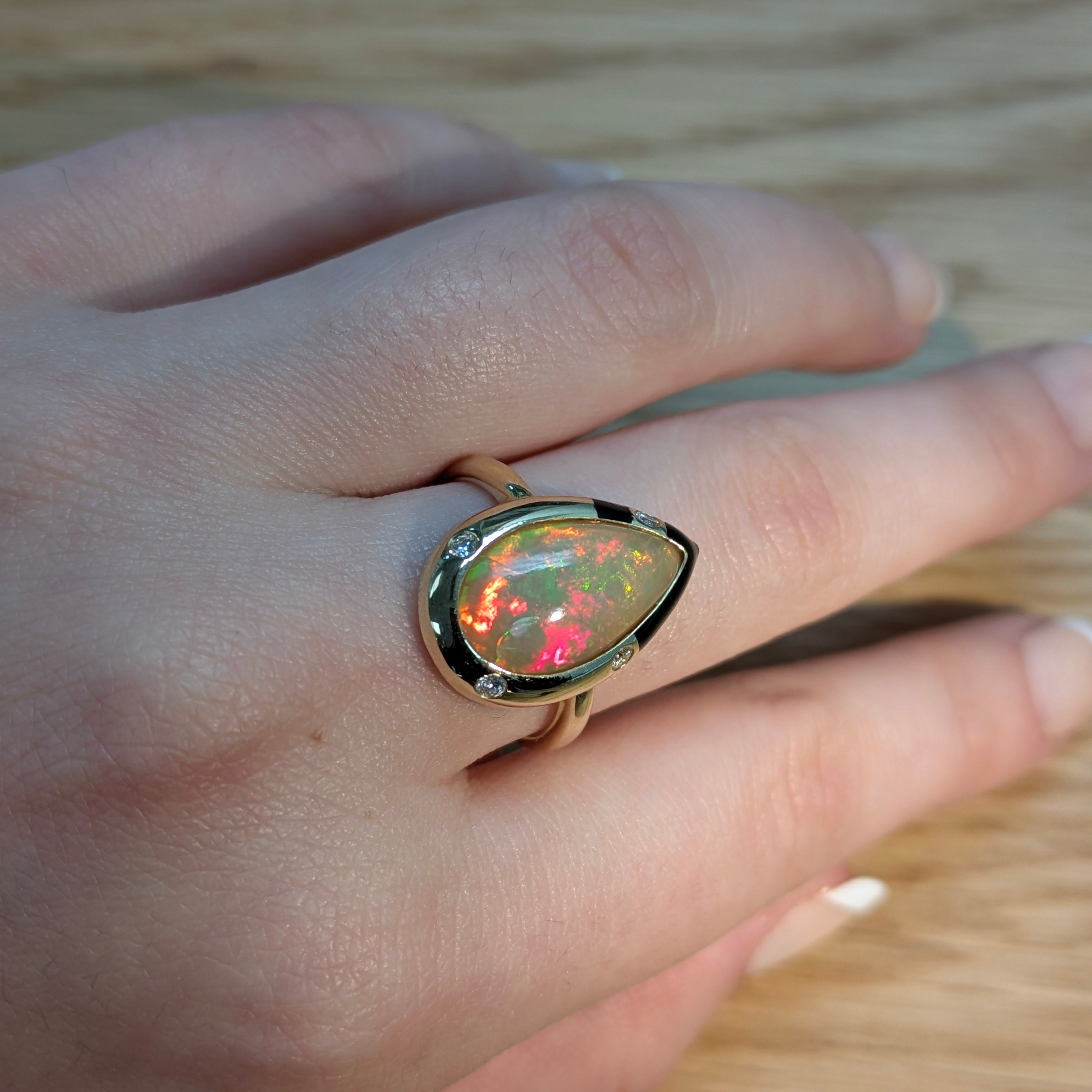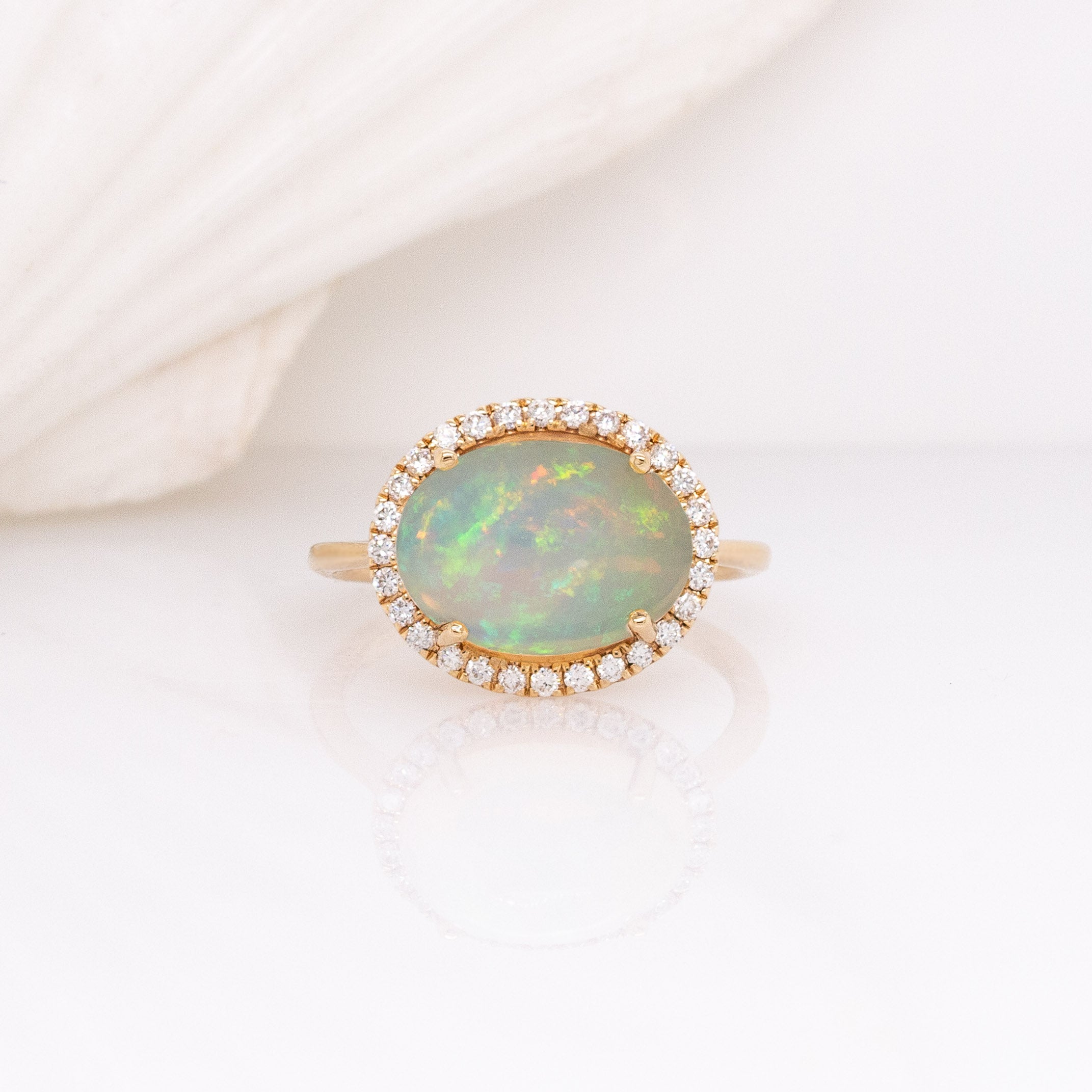 Kayla 14K Yellow Gold Ethiopian Opal and Diamond Ring | 17x12.5mm