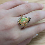 Apoorva 14K Solid Yellow Gold Opal Diamond Ring | Pear 16.5x10mm