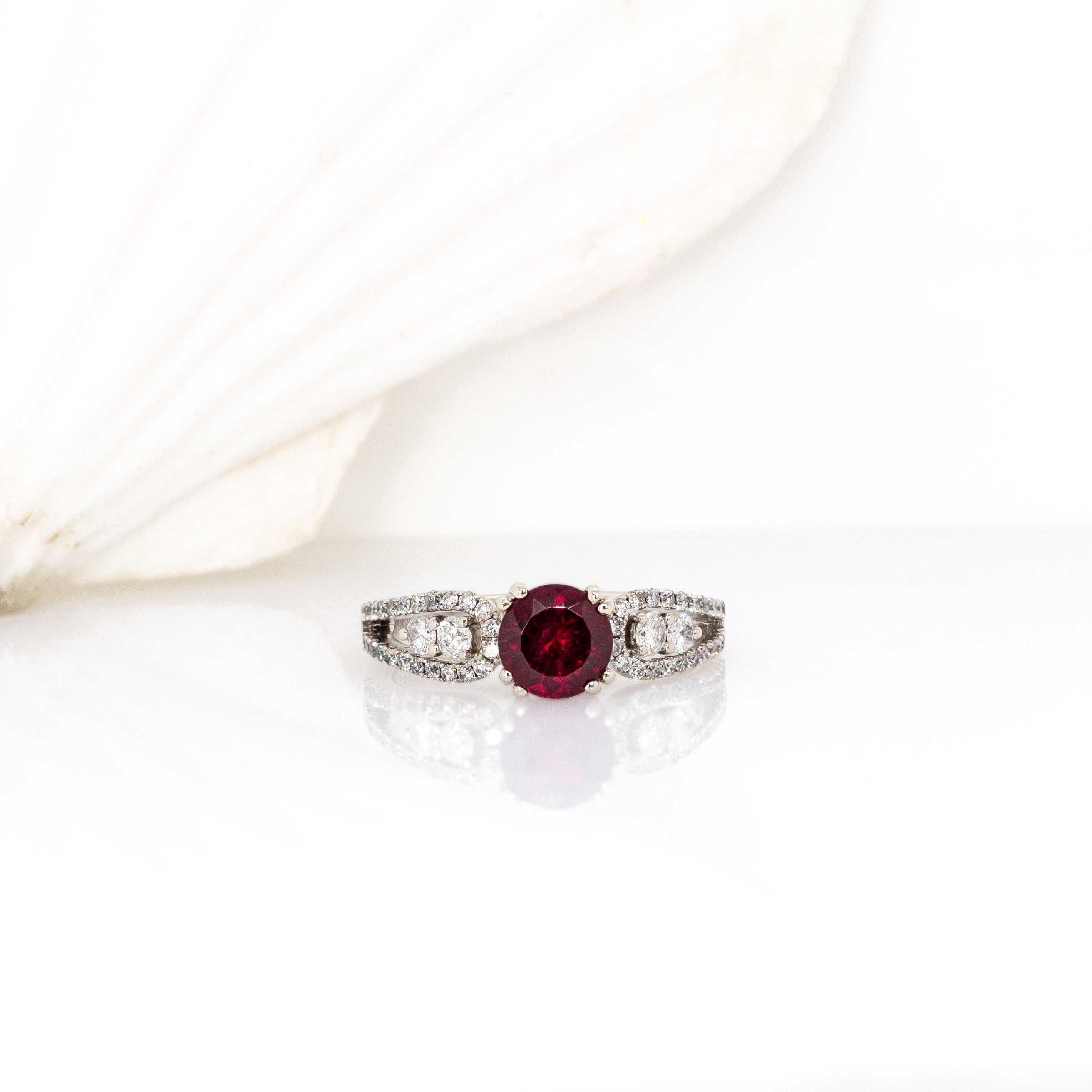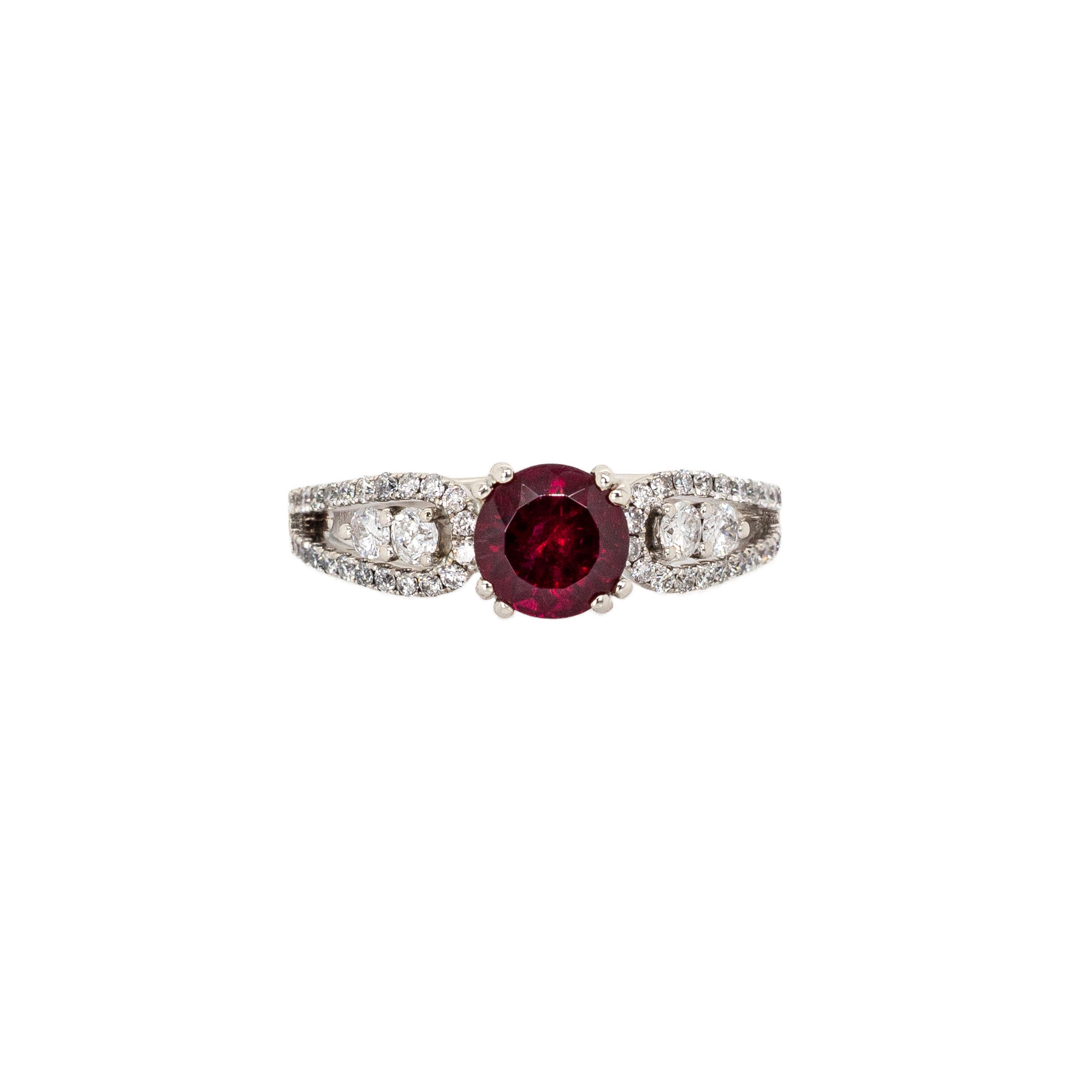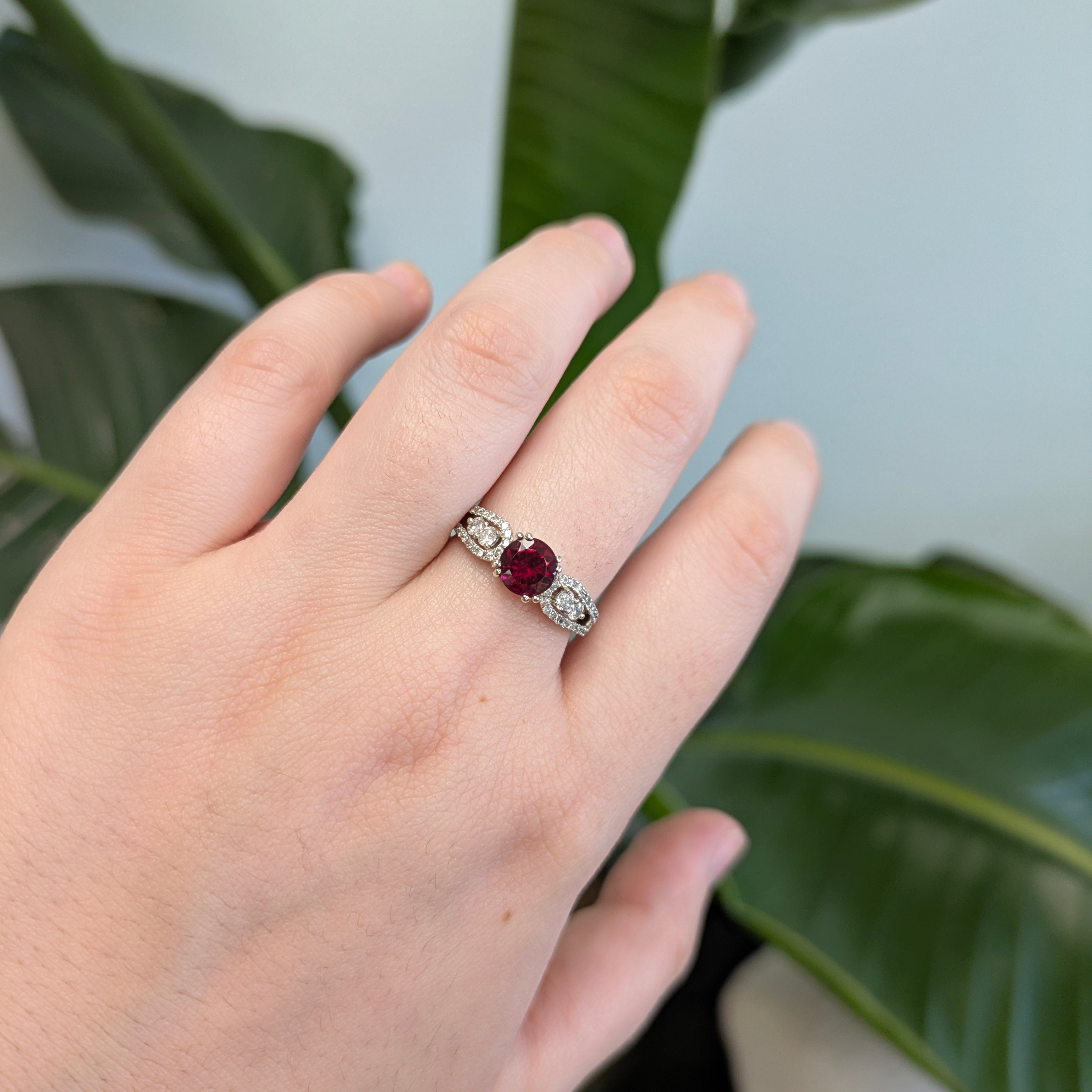 Siana 14k Slid White Gold Estate Rubellite Tourmaline Ring W Natural Diamond Accents | Round, 6mm