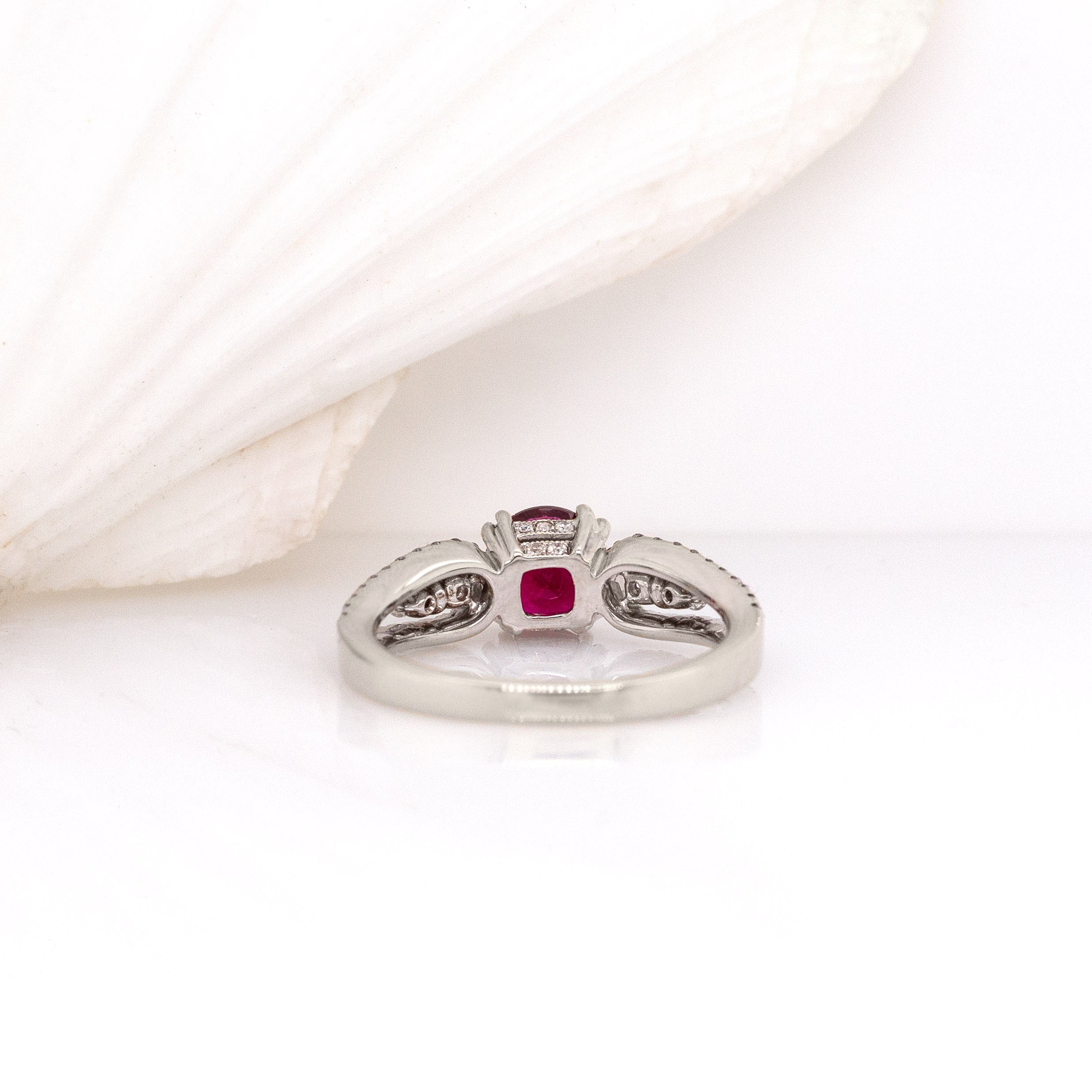 Siana 14k Slid White Gold Estate Rubellite Tourmaline Ring W Natural Diamond Accents | Round, 6mm