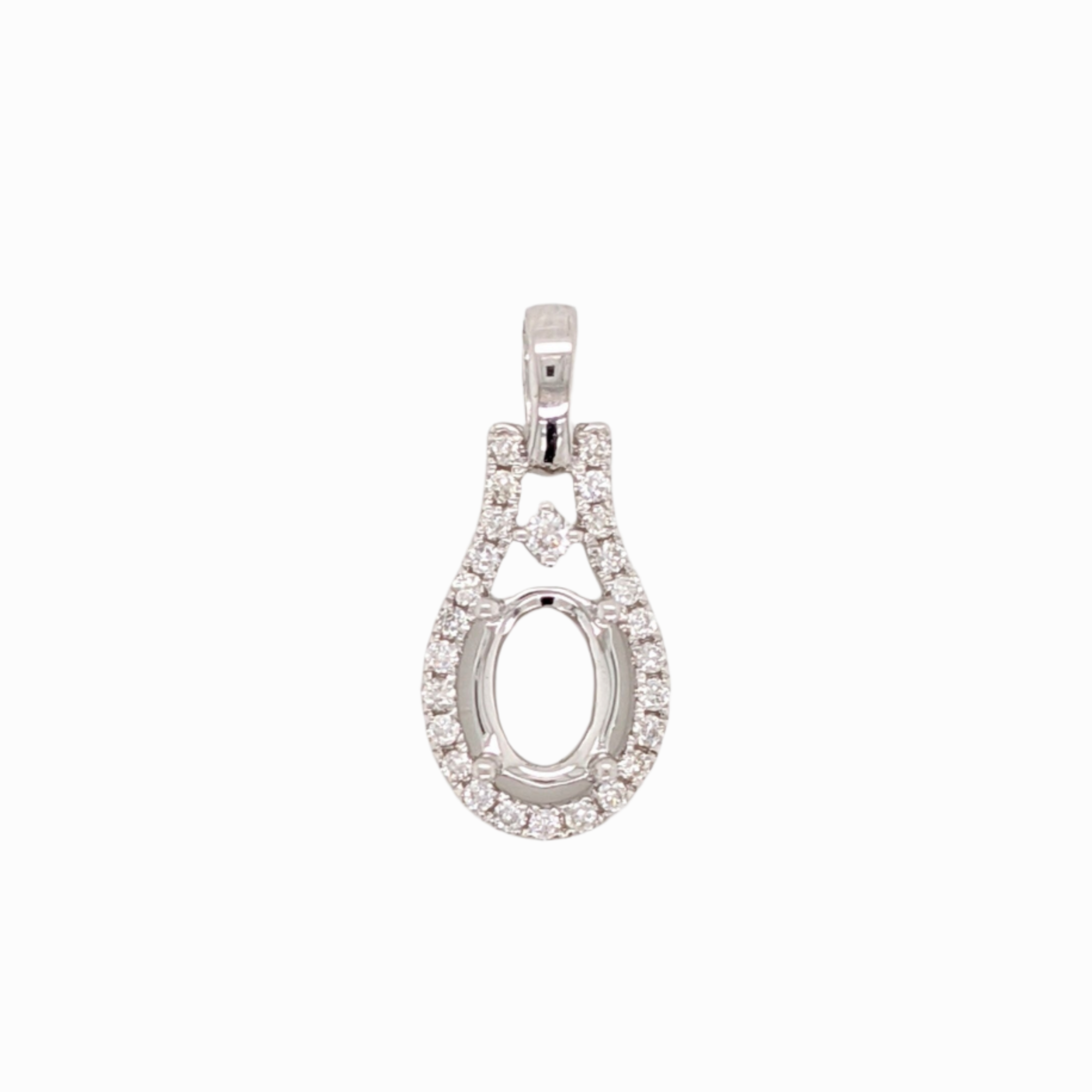 This pendant setting has a halo of diamonds with a single central diamond accent above the primary stone basket. A classic design that can suit any occasion, and makes a wonderful gift option. This design is also available with a diamond studded bail, if you're looking for more sparkle!